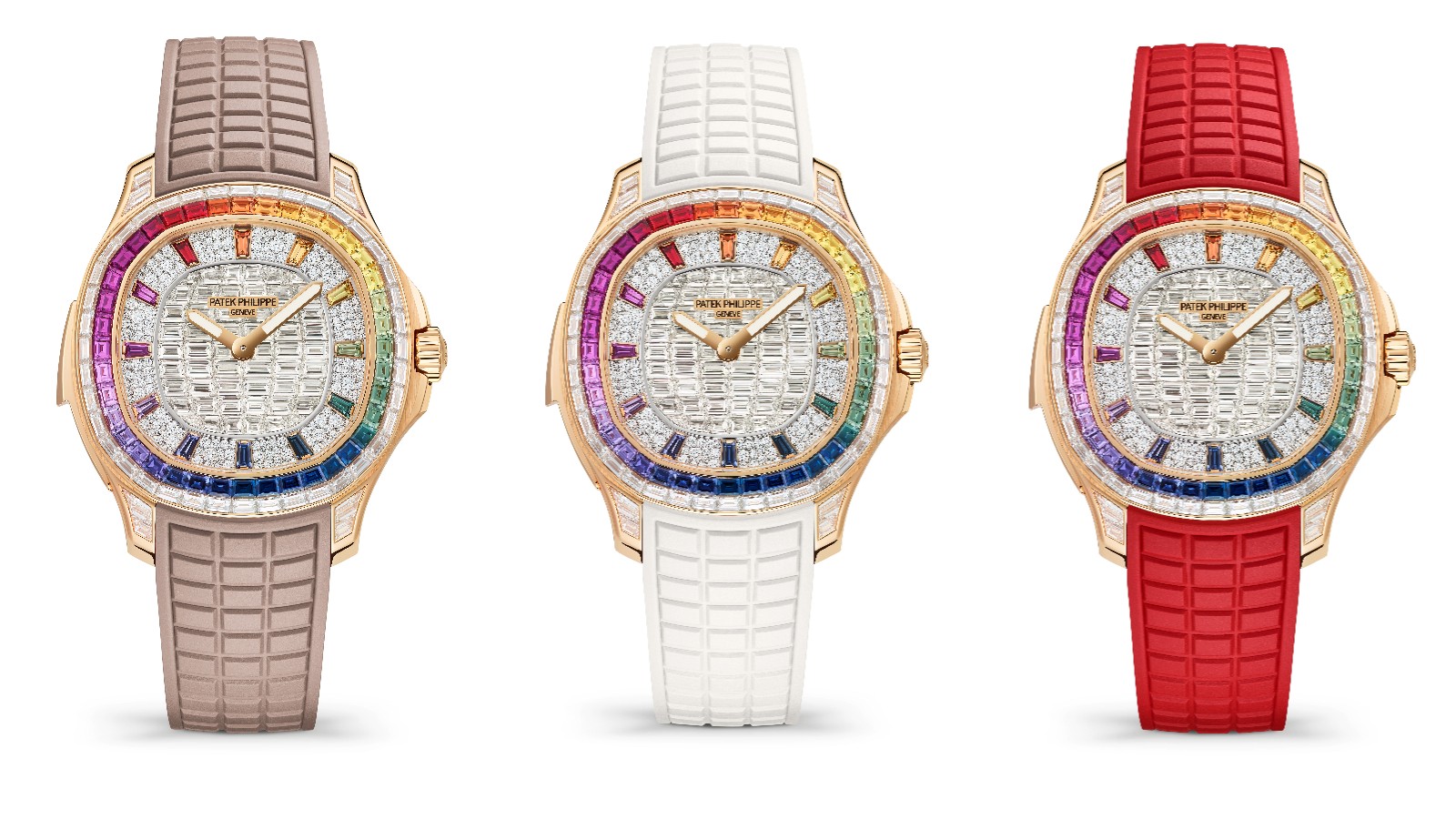 女裝時(shí)計(jì)以其精緻的設(shè)計(jì)、優(yōu)雅的造型、精準(zhǔn)的工藝和個(gè)性化的搭配,凸顯了女性的高雅氣息。作為一種時(shí)尚配飾,無(wú)疑為女性的整體形象增色不少,展現(xiàn)出女性的高貴與魅力。百達(dá)翡麗呈獻(xiàn) Aquanaut Luce和Nautilus 兩個(gè)系列新款三問(wèn)腕表以及高級(jí)珠寶腕表款式,並首度糅合 Aquanaut 時(shí)計(jì)系列「現(xiàn)代悠閒時(shí)尚」風(fēng)格,推出新款三問(wèn)腕表。