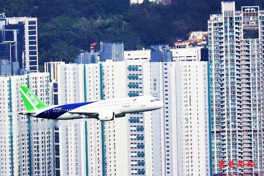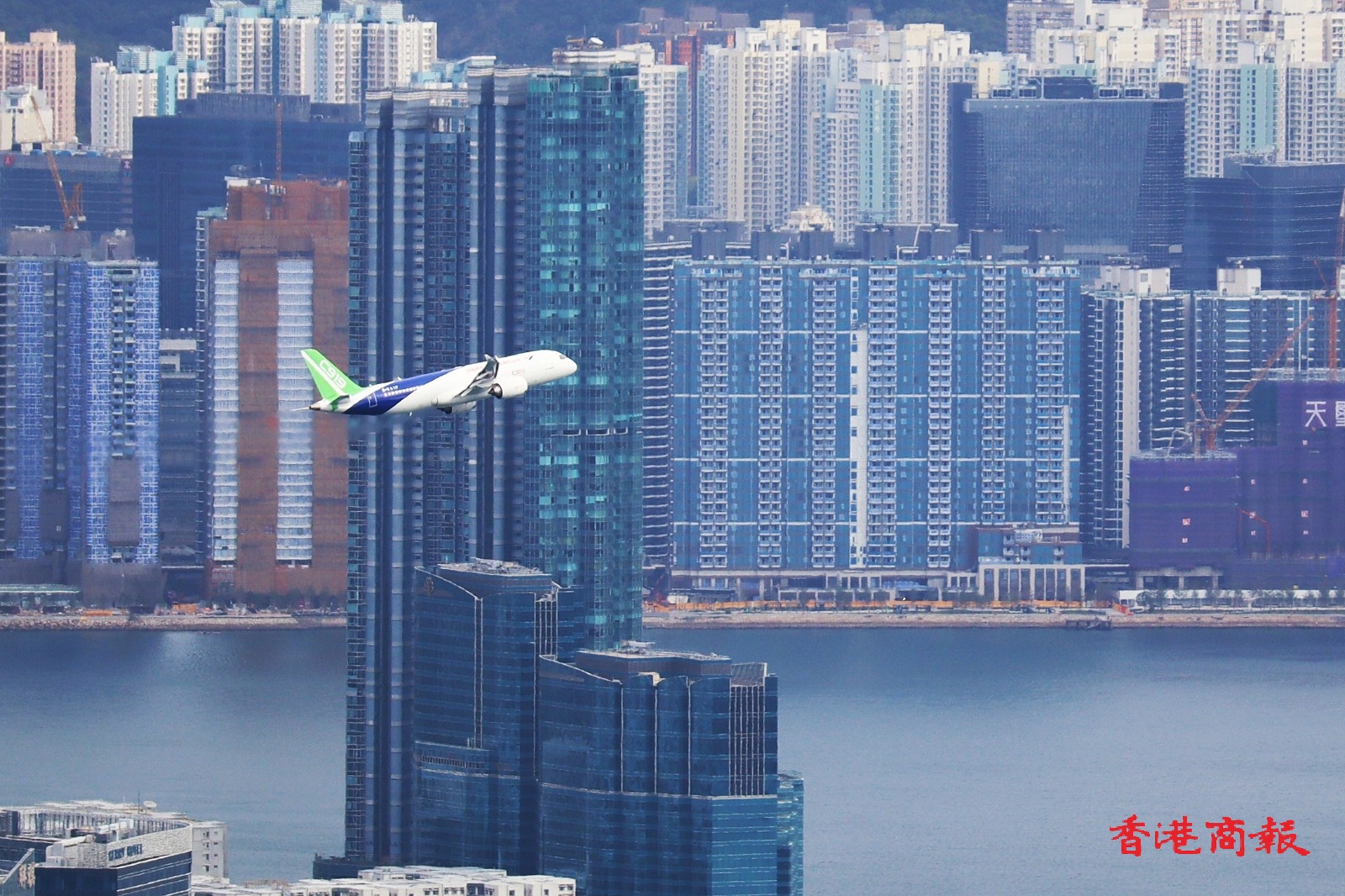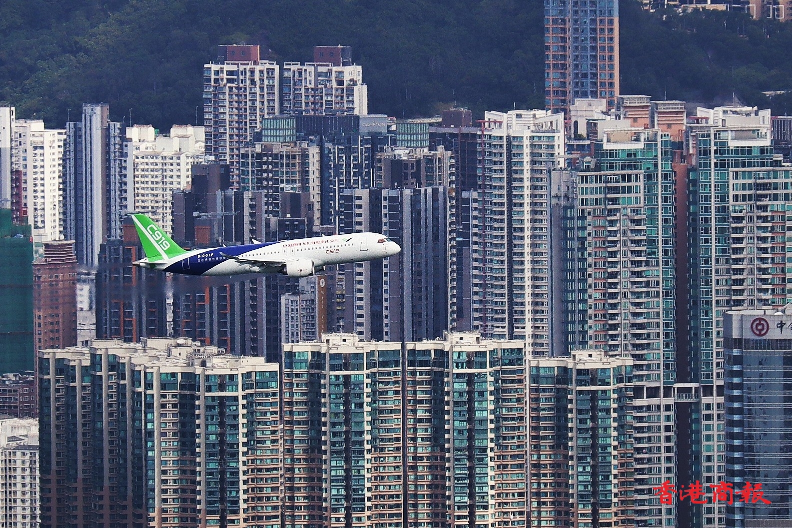 國家自主研製的C919大飛機(jī)今日上午(16日)飛越維港上空進(jìn)行飛行演示。上午近10時半,C919從香港機(jī)場起飛;約10時50分,C919由西至東進(jìn)入及飛越維港上空,並環(huán)繞香港島兩圈,吸引大批市民及遊客在維港兩岸觀看。