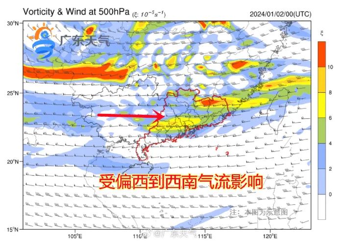 據(jù)@廣東天氣消息,未來5天,副高位於南海中部偏北,廣東省主要受偏西到西南氣流影響,間中有短波槽影響,西北部有弱降水,其餘大部多雲(yún)為主;2-3日早晨,西江流域和粵西的部分市縣有(輕)霧,粵北部分市縣受弱降水影響,以上地區(qū)能見度偏低。
