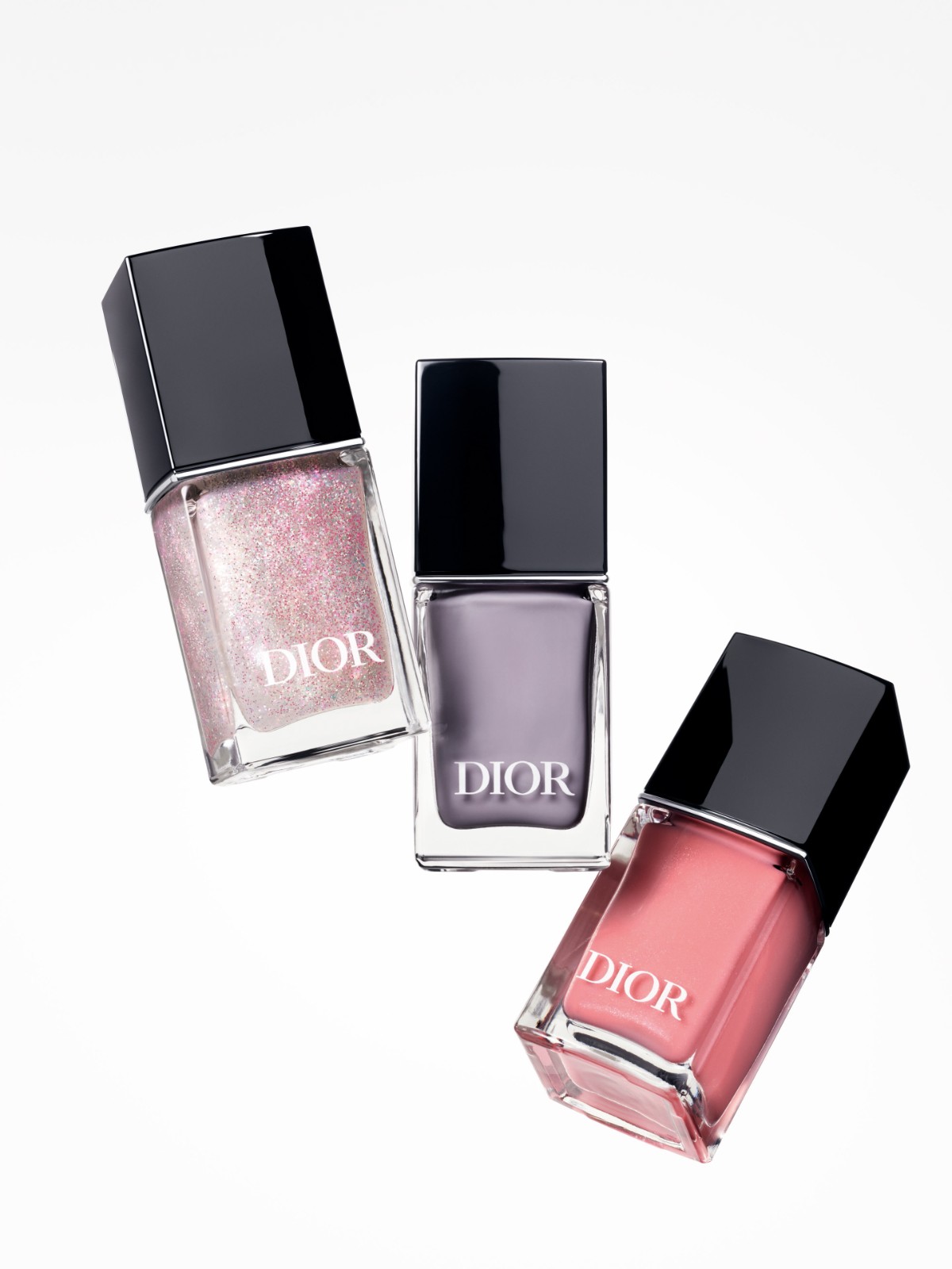 美妝甲油為妝容添上最後點(diǎn)綴,珊瑚粉紅色555 Popeline添加豐富且低調(diào)的深邃金紫色珠光粒子;另一款色調(diào)595 Lilac Organza詮釋了春日溫婉的花卉意象。001 Dior Sequins甲油面油的鉑金、淡紫、粉紅和深紫色閃粉能提升甲油的閃爍效果,亦可單獨(dú)使用,打造低調(diào)的甲色。 (記者:Janice)