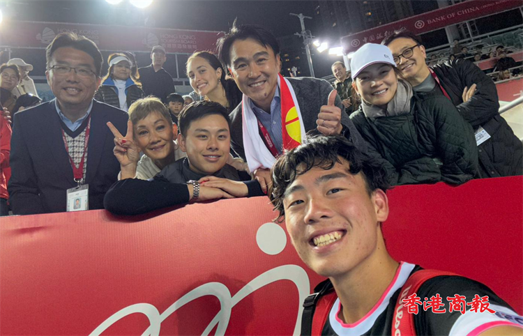 黃澤林賽後與瑞士盈豐銀行亞太區(qū)行政總裁兼盈豐青年運動員基金會主席趙善銓(帶頸巾)及爸爸(左)自拍一張。(圖片來自賽會)