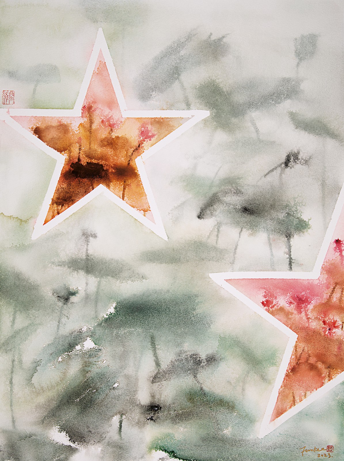 蕭芬琪作品《物轉(zhuǎn)星移幾度秋》,水彩畫(huà),76.5×56.5cm,2023年。
