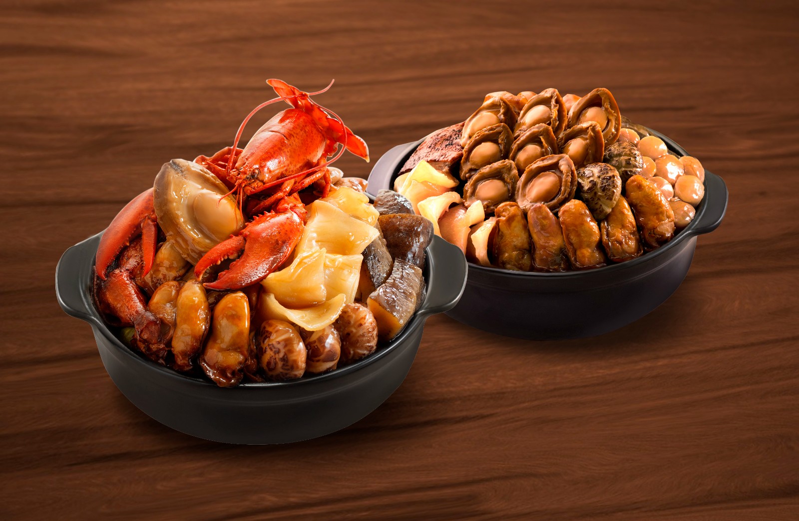 與親友圍桌而坐,享用豐盛的盆菜,是新春必備環(huán)節(jié)。酒店推出3款經(jīng)典盆菜,包括鮑羅萬有盆菜、原隻三頭鮑魚龍蝦盆菜及原隻花膠鮑魚盆菜,鮑魚經(jīng)過6小時燉煮,再用秘製湯汁燜煮4小時,肉質(zhì)鮮甜。配上花膠、海參及龍蝦等,盆滿缽滿。素食人士可選擇素盆菜上珍菌原隻素鮑齋盆菜,取材滋補的雲(yún)南天然菌類,包括羊肚菌、榆耳菌及黃耳菌,含有高蛋白、纖維和膠原,配上原隻素鮑魚,繼續(xù)「大魚大肉」過新年。