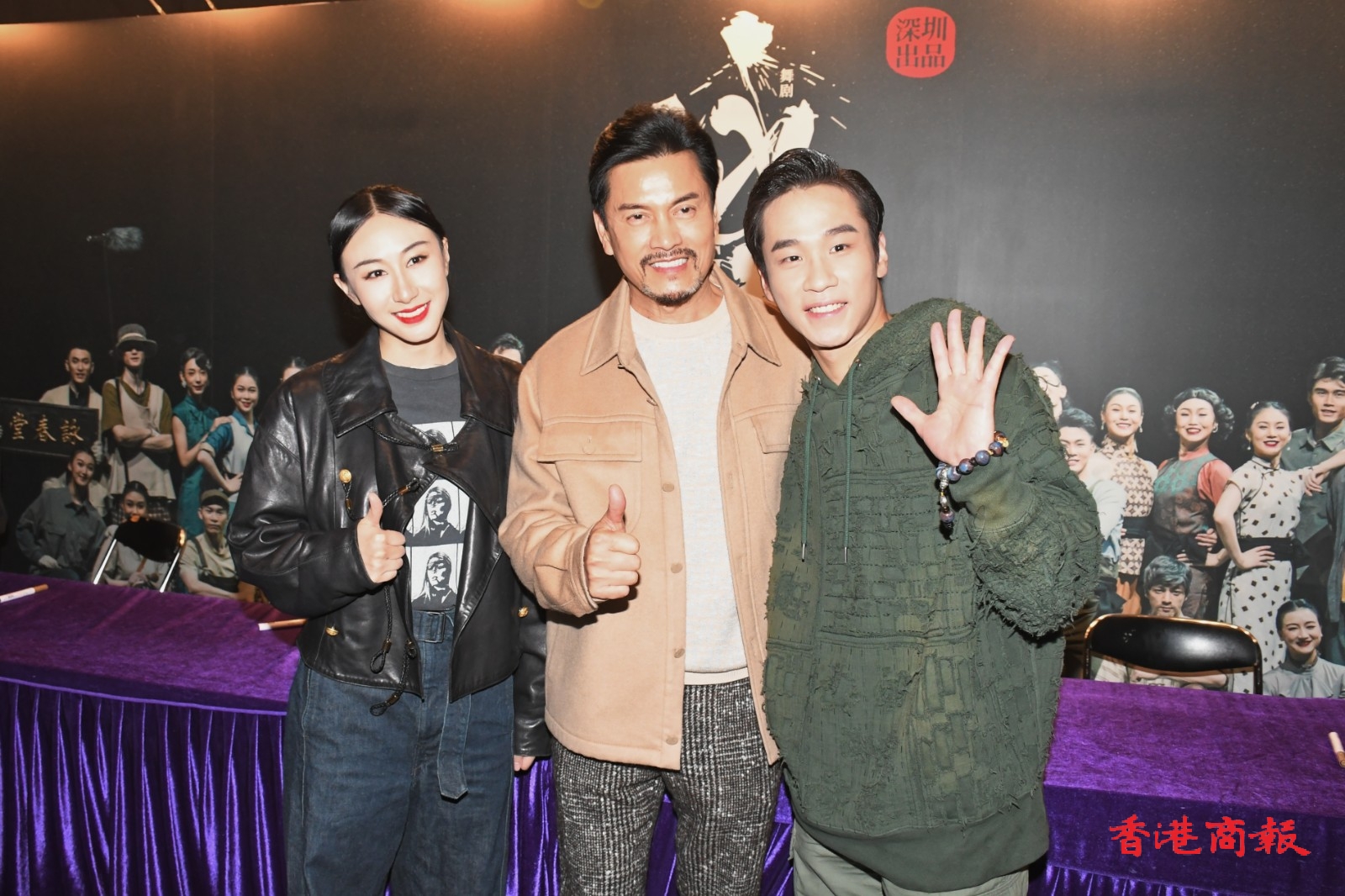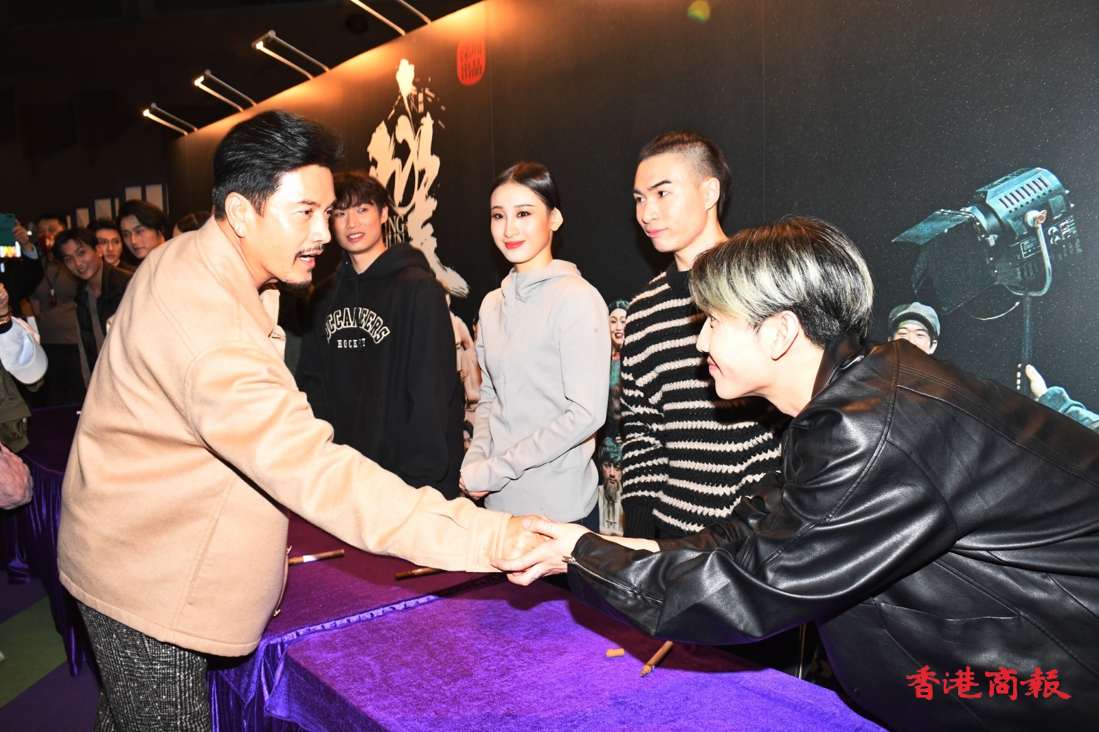 深圳原創(chuàng)舞劇《詠春》今晚(5日)繼續(xù)在香港演藝學(xué)院演出,香港演員呂良偉前來捧場??赐暄莩鲠釁瘟紓ヅc《詠春》演員們握手合照,並讚揚(yáng)他們演出超好看。