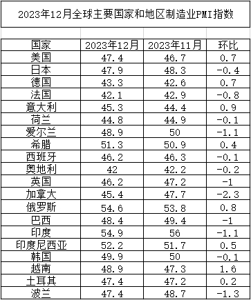 據(jù)中國物流與採購聯(lián)合會消息,2023年12月份全球製造業(yè)PMI為48%,與上月持平,連續(xù)15個月運行在50%以下。2023年,全球製造業(yè)PMI均值為48.5%,較2022年下降3.3個百分點,全年各月均運行在50%以下,全球經(jīng)濟(jì)增長勢頭較2022年有所放緩。分區(qū)域看,2023年,亞洲製造業(yè)PMI均值為50.7%,與2022年持平,顯示出較強(qiáng)的增長韌性;非洲製造業(yè)PMI均值為48.8%,較2022年下降1.9個百分點,在全球經(jīng)濟(jì)復(fù)蘇較弱的影響下,非洲製造業(yè)增速較2022年也有所放緩;美洲製造業(yè)PMI均值為47.5%,較2022年下降5.6個百分點,持續(xù)加息給美國製造業(yè)帶來影響,成為拖累美洲製造業(yè)復(fù)蘇的主要因素;歐洲製造業(yè)PMI均值為46.3%,較2022年下降5.6個百分點,顯示在地緣政治衝突和持續(xù)加息的影響下,歐洲製造業(yè)持續(xù)弱勢。