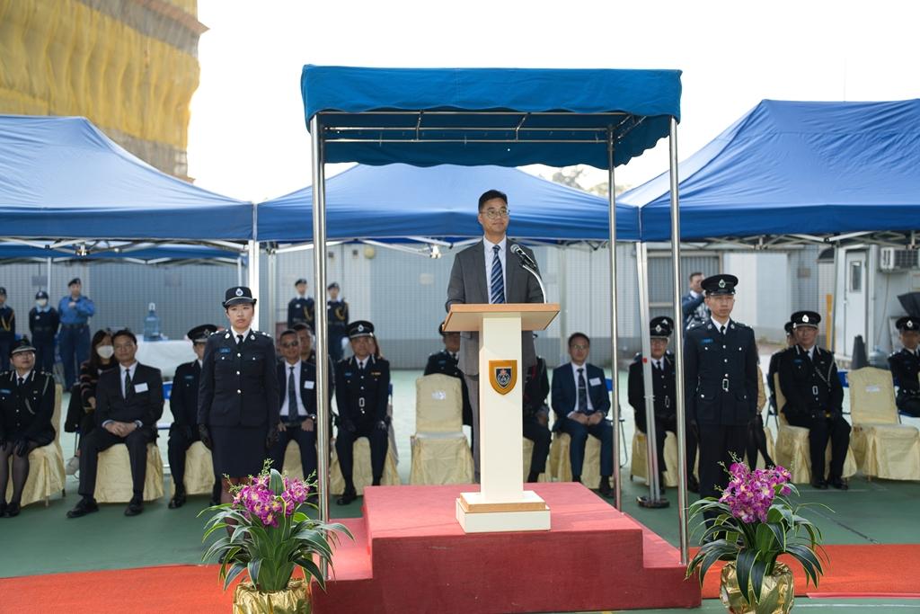 民眾安全服務(wù)隊(duì)(民安隊(duì))少年團(tuán)今日(6日)於民安隊(duì)總部舉行第140屆新團(tuán)員結(jié)業(yè)會(huì)操,並邀得保安局副秘書(shū)長(zhǎng)任向華擔(dān)任檢閱官。