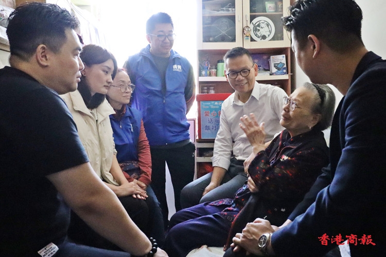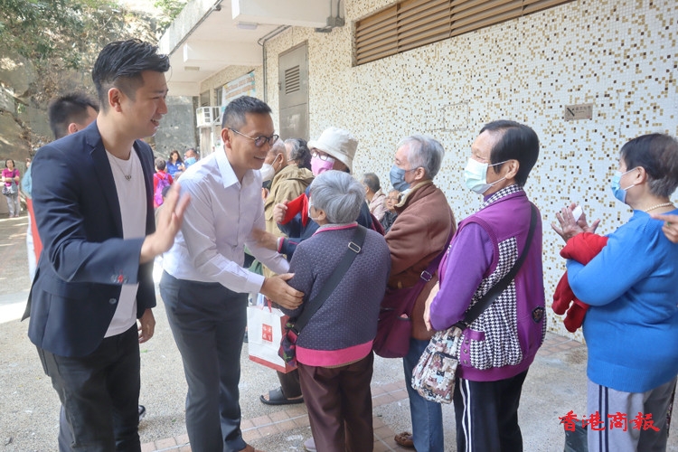 新界西南立法會議員陳恒鑌與葵青區(qū)議員黃俊揚與輪侯長者交流。