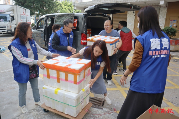 葵盛東邨小區(qū)關愛隊群芳雅舍與地區(qū)團體葵涌居民促進會獲社區(qū)上善心機構與善心人士捐出300個飯盒。