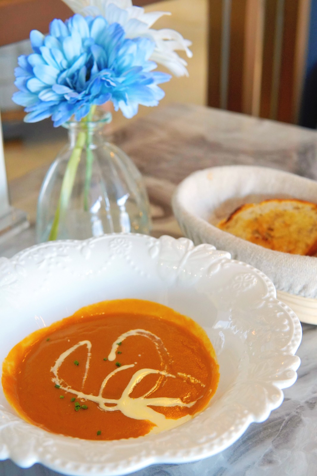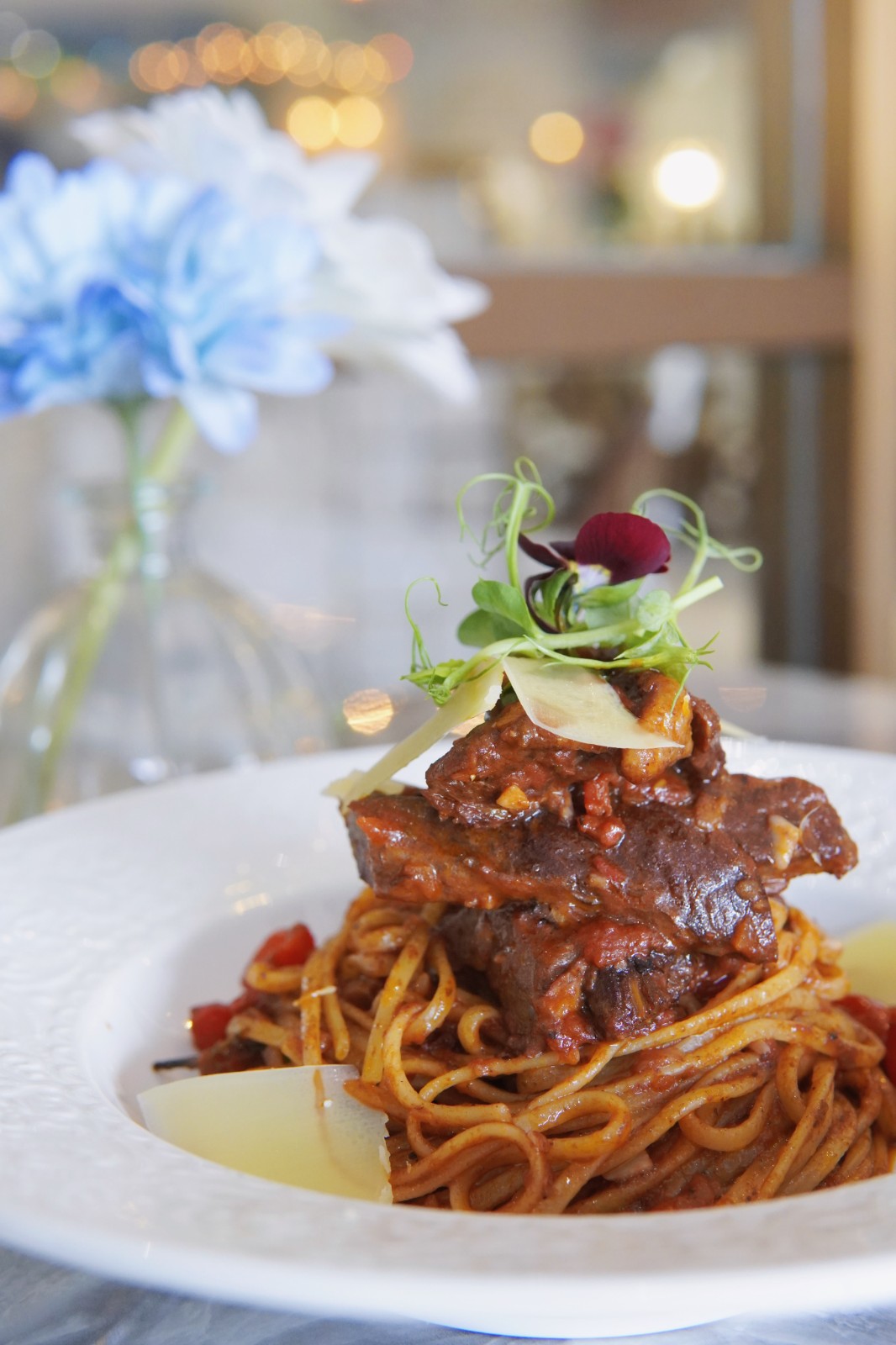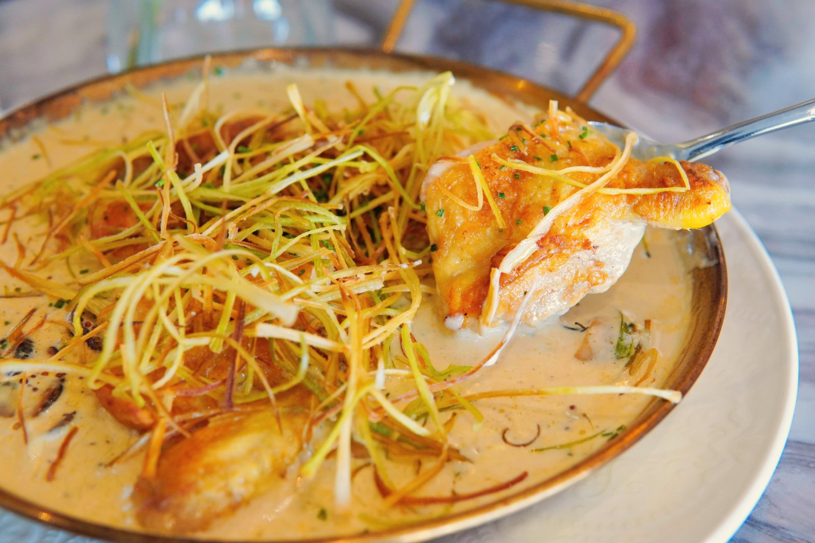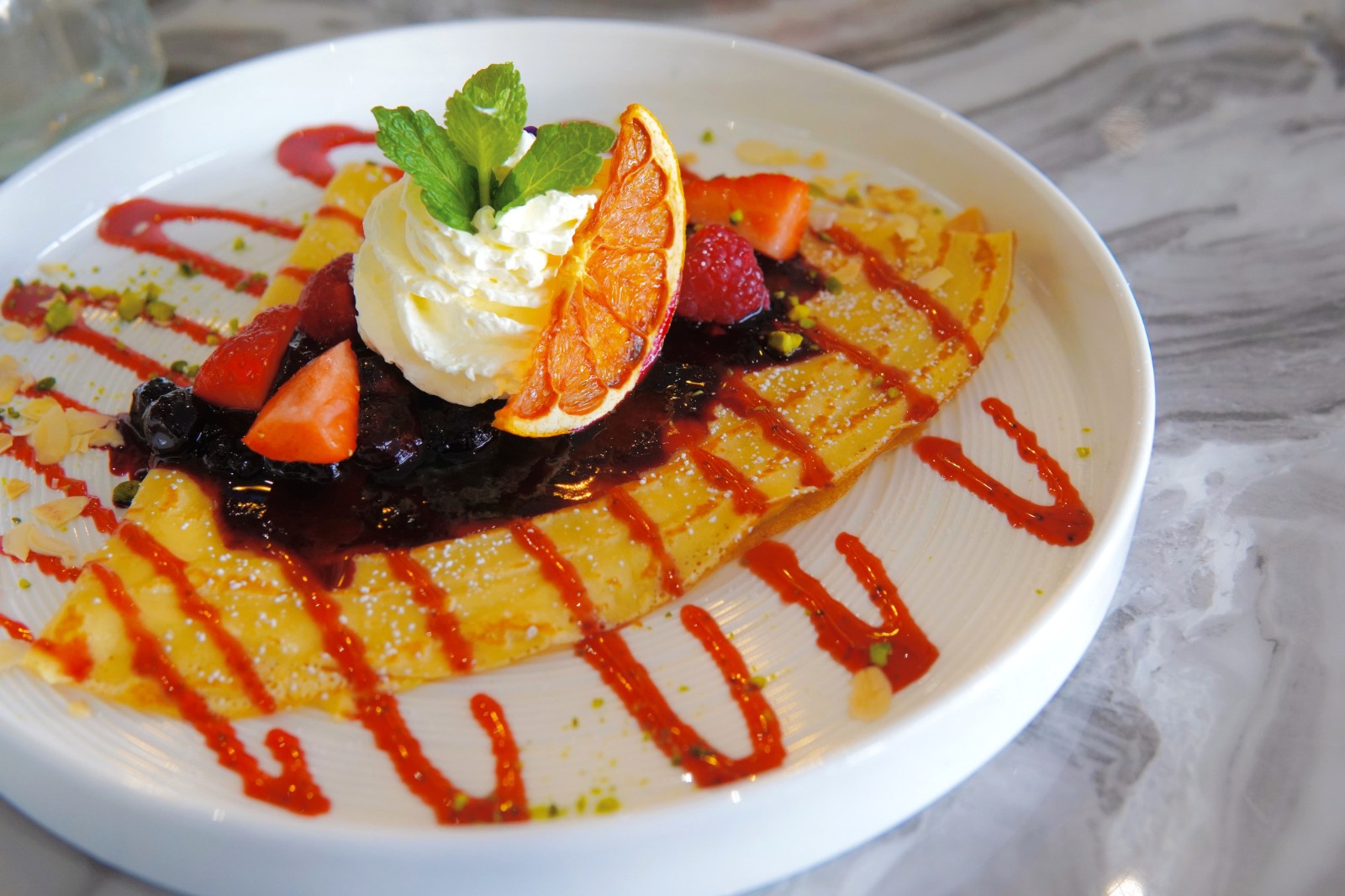 如法國經(jīng)典菜式凍海鮮拼盤,包含半隻波士頓龍蝦、時(shí)令生蠔、法國麵包蟹、翡翠螺、青口等,冰凍的口感帶出海鮮的鮮味;法式大蒜蘑菇忌廉烤雞的雞肉嫩滑,醬汁濃郁並帶有一絲蒜香,除薯仔、蘑菇外,還加入了藜麥,健康之餘富飽腹感;另一經(jīng)典法國菜紅酒牛肋肉扁意粉,牛肋肉入味軟腍,帶有微微酒香,配上口感厚實(shí)彈牙的扁意粉,層次豐富;甜品推介自家製藍(lán)莓醬士多啤梨班戟,藍(lán)莓醬酸甜濃郁,能看見大大粒藍(lán)莓,與軟糯香甜、充滿蛋香的班戟配合相得益彰。