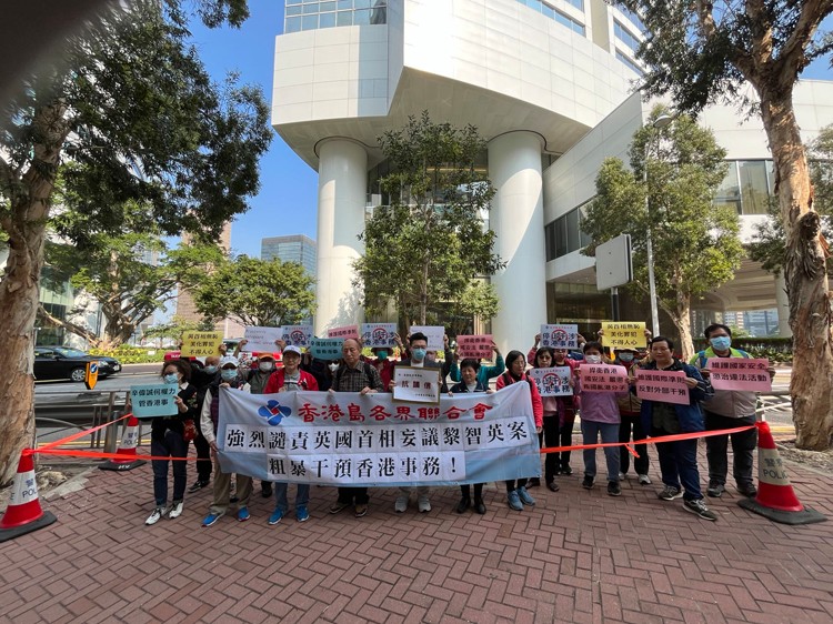 此外,香港島各界聯(lián)合會(huì)亦有一眾義工前來(lái)表達(dá)不滿,眾人高叫口號(hào)「強(qiáng)烈譴責(zé)英國(guó)首相妄議黎智英案,干預(yù)香港司法」。會(huì)方表示,黎智英是反中亂港首惡,其叛國(guó)罪行鐵證如山,並支持外交部駐港公署發(fā)言人敦促反華政客認(rèn)真現(xiàn)實(shí),立即打消干預(yù)中國(guó)內(nèi)部事務(wù)的不良企圖。