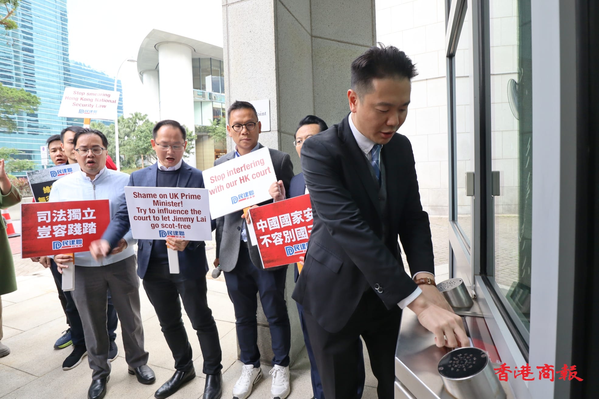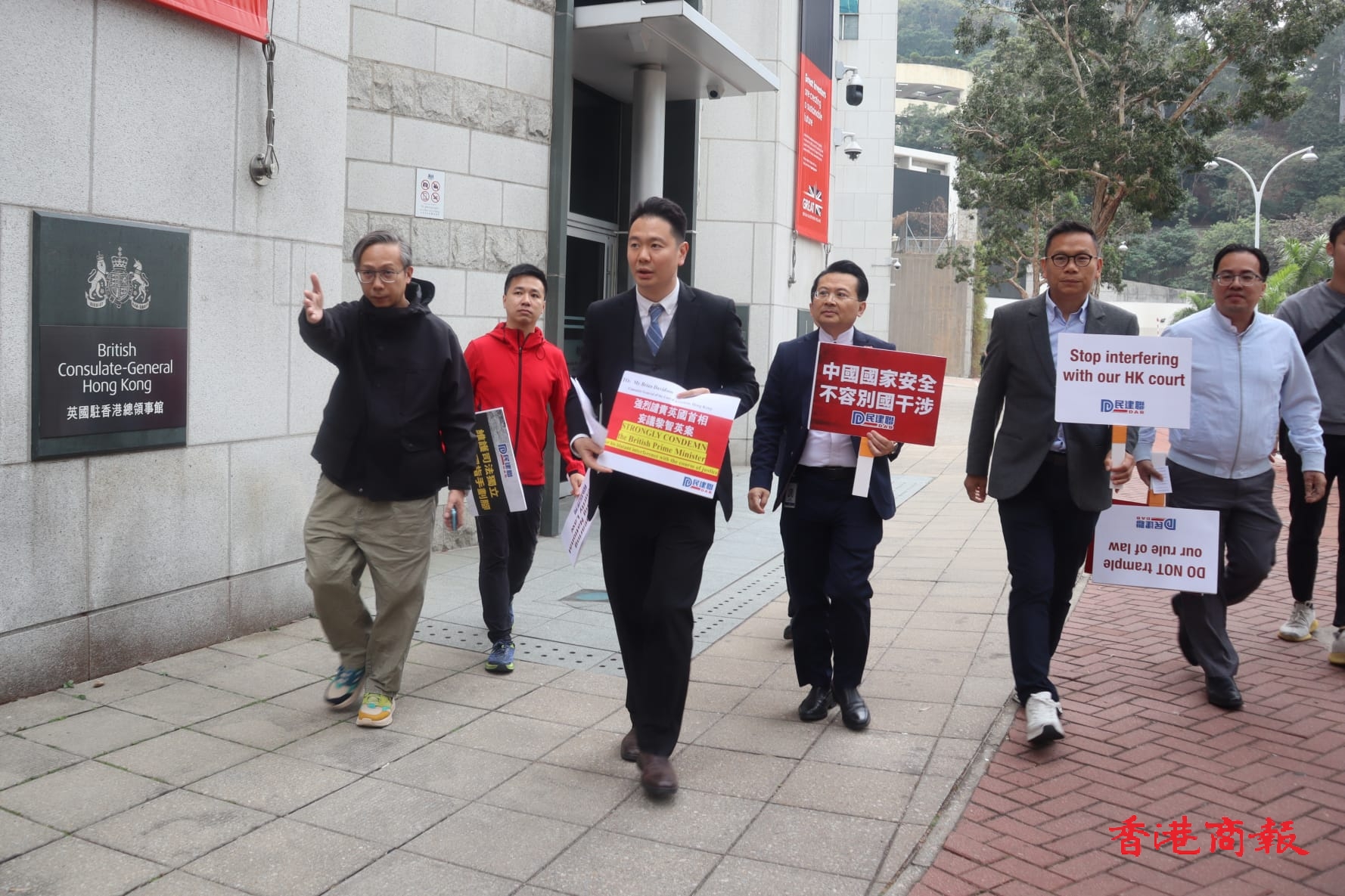 圖說:民建聯(lián)到英國駐港總領館抗議英國首相行徑如同干預及踐踏香港司法。馮瀚文攝