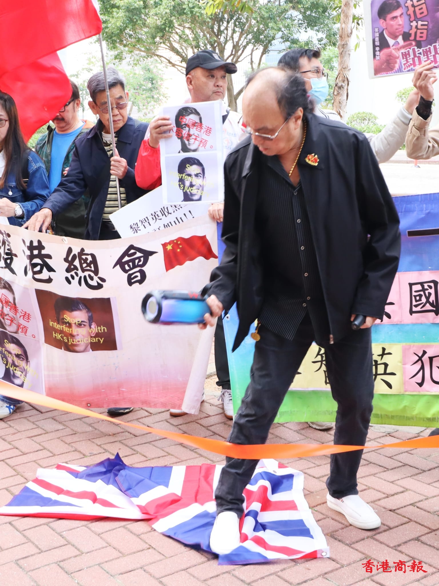 英國(guó)首相辛偉誠(chéng)涉妄議黎智英案一事,觸發(fā)本港各界人士憤慨,今日(12日)先後有不同團(tuán)體或市民到位於金鐘的英國(guó)駐港總領(lǐng)事館表達(dá)不滿。