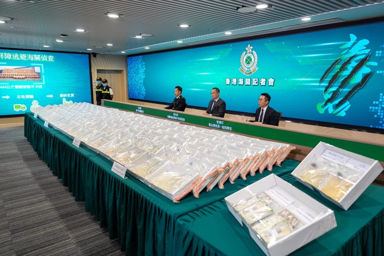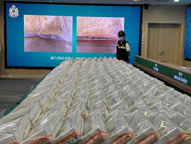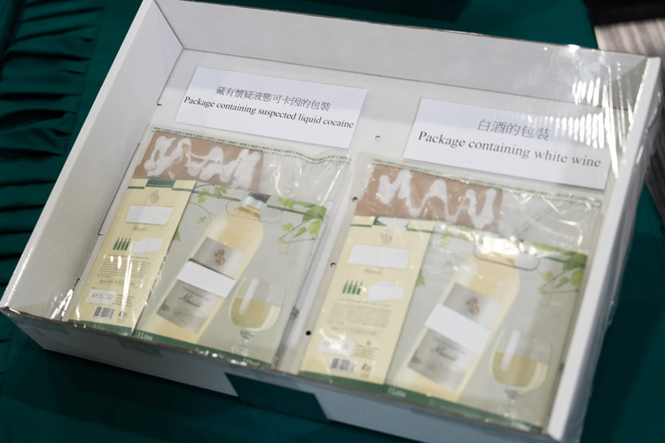 海關(guān)港口及海域科港口管制課監(jiān)督呂智德表示今日(15日)表示,在2023年12月進行反毒品調(diào)查期間,發(fā)現(xiàn)販毒集團在聖誕節(jié)前夕偷運大批毒品經(jīng)海路進港,隨即聯(lián)同港口及海域科人員對貨物資料分析,鎖定一批從巴西運港、報稱載有706箱紅白餐酒和果汁的貨櫃,在該月的19日,人員在葵涌驗貨場進行檢查,發(fā)現(xiàn)當中的部分紙盒有曾折開從新包裝的痕跡,而且重量不一,打開後部分白酒並無印刷生產(chǎn)日期和編號,引起人員懷疑,進行快速毒品測試,當中37箱白餐酒對可卡因呈陽性反應,最終檢獲444公斤懷疑液態(tài)可卡因,估計市值約4.9億元。