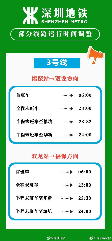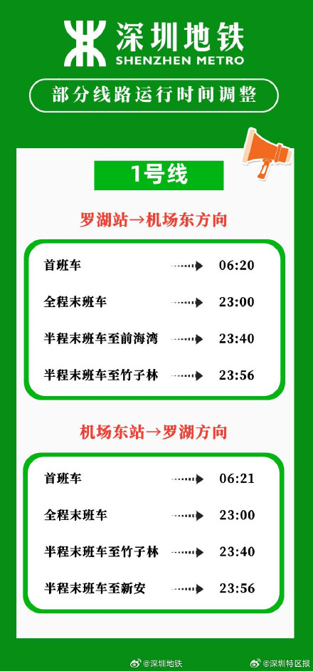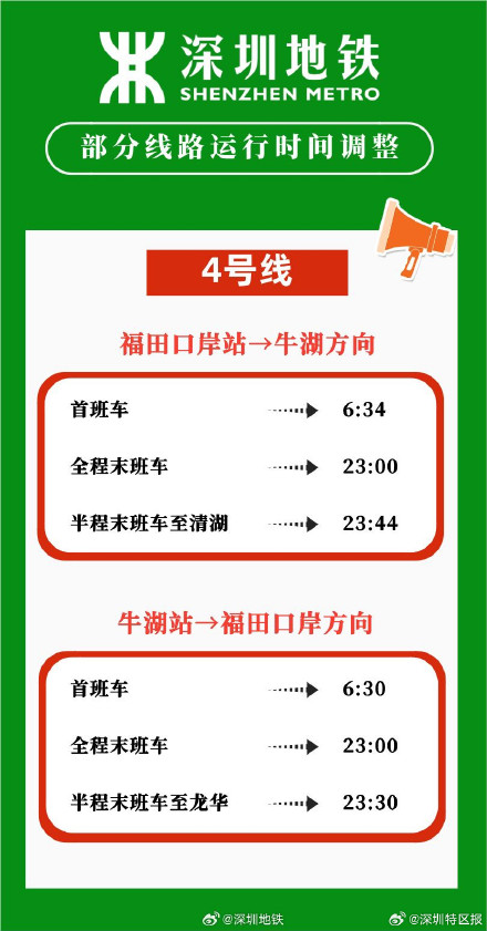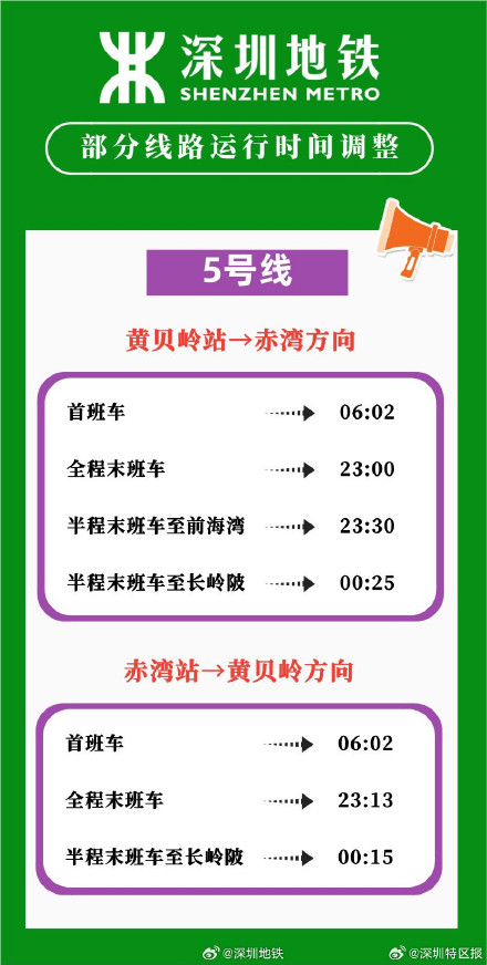 責(zé)任編輯:鄭嬋娟 注意!深圳地鐵部分線路運營時間調(diào)整