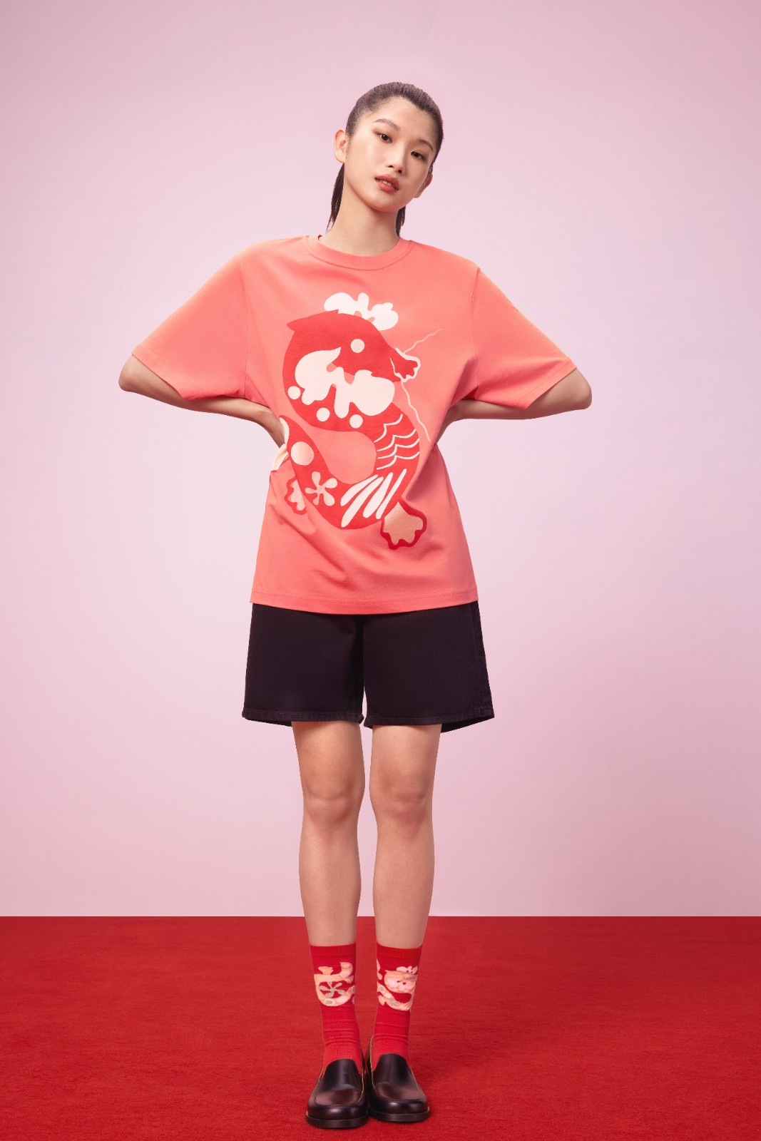 印花Jalo以絢麗俏皮的色調展現抽象的形狀,呈現了設計師標誌性的剪紙技藝。龍在中國文化中代表權力、高貴、榮譽、幸運和成功,印花象徵了高貴和永恒的友誼。龍年限定膠囊系列以紅色的Jalo圖案活現牛仔外套、T恤和衛(wèi)衣上,在紅、白兩色的襯托下,印花猶如畫龍點睛,具佳節(jié)氛圍。服飾用料選用100%有機棉organic cotton,貫徹品牌永續(xù)環(huán)保時尚的理念。