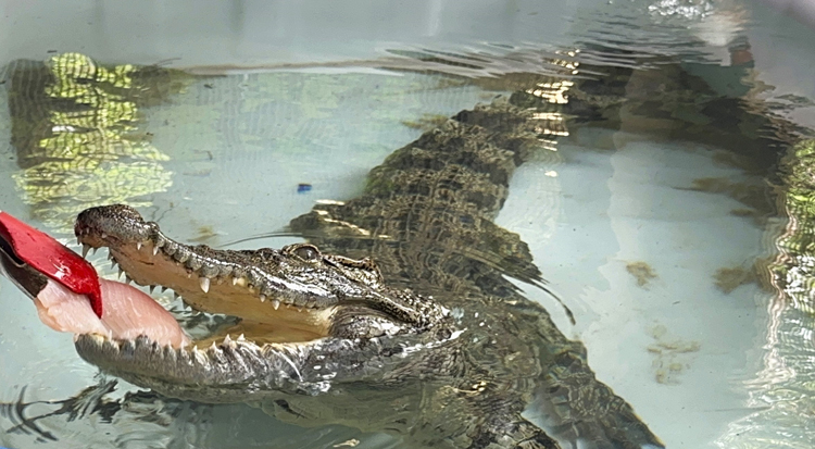 鱷魚現(xiàn)正暫居於海洋公園的後勤設(shè)施,狀態(tài)良好。大家可以透過海洋公園社交媒體得知牠的最新近況。