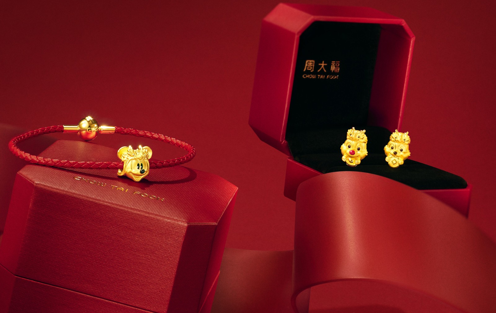 「迪士尼經(jīng)典」系列米奇龍年足金串飾(左)、「迪士尼經(jīng)典」系列大鼻足金串飾(右)。