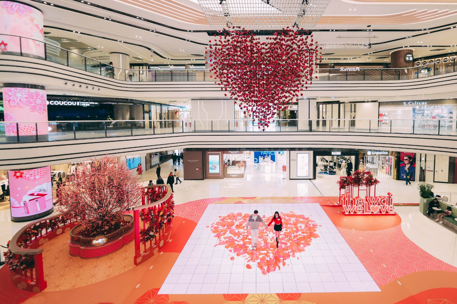 PopCorn、The LOHAS康城及圍方分別以花為主題。Popcorn設(shè)中西合璧的「花漾龍門(mén)」布置,花藝師Solomon Leong以中國(guó)傳統(tǒng)的竹片工藝展現(xiàn)飛龍?jiān)谔斓男螒B(tài),並以多達(dá)10款花卉打造出精緻花圃,將中庭幻化成園林;The LOHAS康城以粉色系糅合醒獅打造「鴻運(yùn)舞獅」裝置,情侶可於多個(gè)造型可愛(ài)的迷你醒獅前拍下合照,或於粉紅花叢旁漫步,浪漫又溫馨;圍方以過(guò)萬(wàn)花束配合LED屏幕打造「繁花綻放新春庭園」,庭園以喜慶紅色及溫馨粉紅色為主調(diào),中庭以花束製成心形圖案高掛半空,地面則以LED屏幕打造充滿(mǎn)動(dòng)感及活力的新春「福地」,在商場(chǎng)不同樓層可多角度欣賞繁花綻放的畫(huà)面。