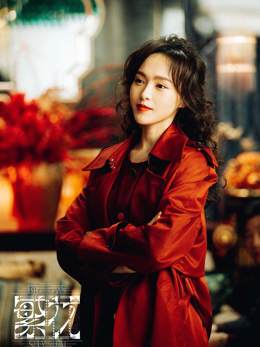 唐嫣身穿復古紅色風衣,明艷動人。