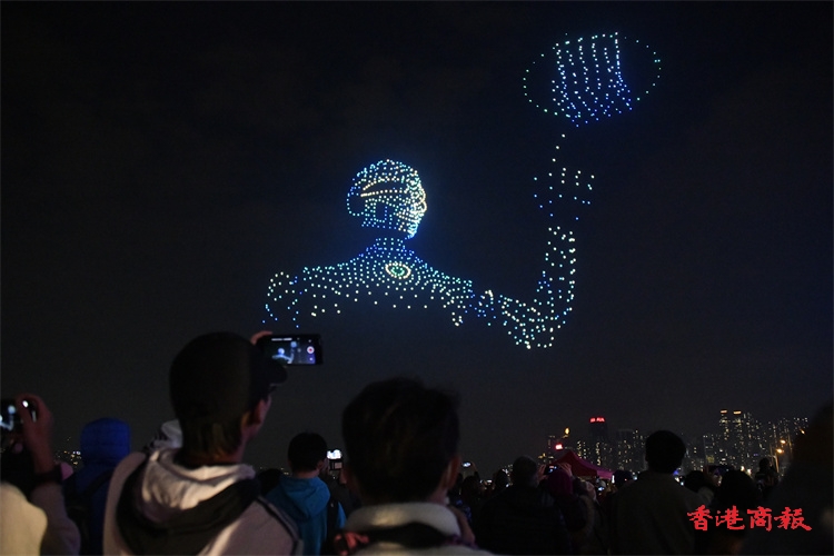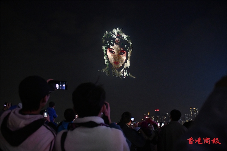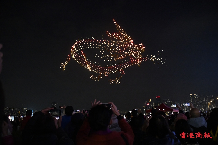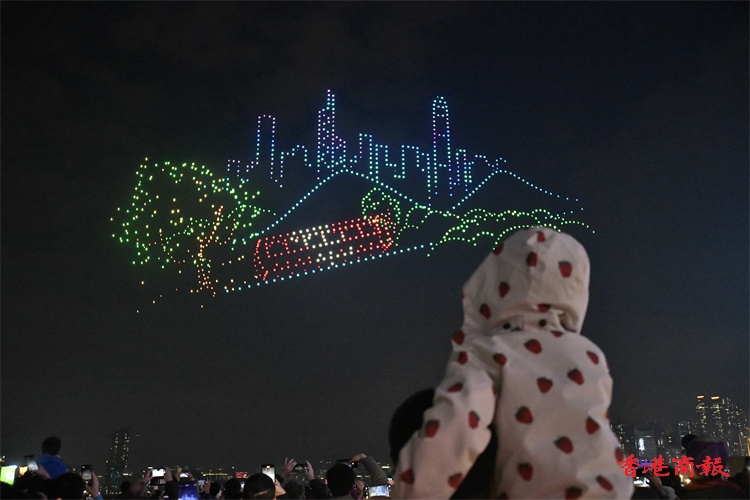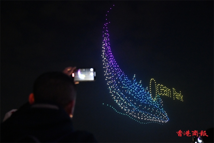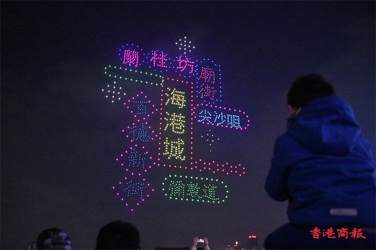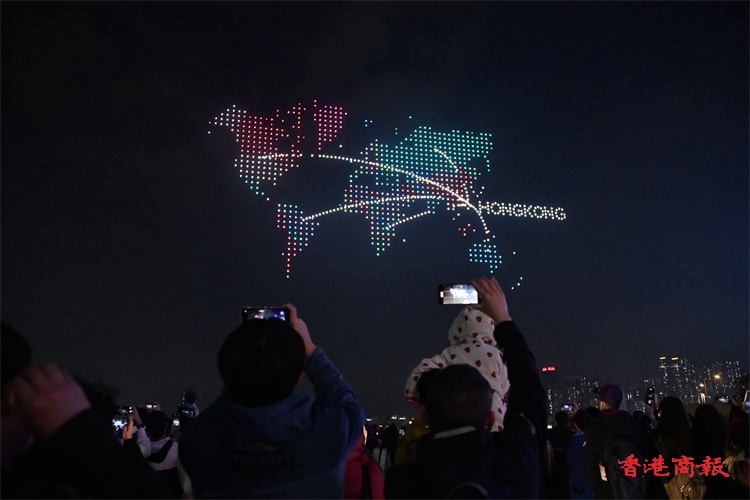 為支持響應特區(qū)政府「日夜都繽紛」主題活動,由紫荊文化集團主辦的「繽紛香港」大型無人機燈光秀表演活動今晚(28日)在灣仔舉行,逾千架無人機以創(chuàng)意秀形式展現香港特色的畫面元素,讓觀眾感受東方之珠的浪漫風采。首先,無人機秀出一幅世界地圖及「HONG KONG」文字,接著演變?yōu)榇篝~、機器人智慧魔方、粵劇花旦臉譜、巨龍、蘭桂坊與廟街等文字、山頂及纜車圖案等。最後,無人機秀出領取眾多商家提供的遊覽、住宿、購物、出行優(yōu)惠券的巨型二維碼,在場觀眾均讚嘆不已。(蔡啟文攝)