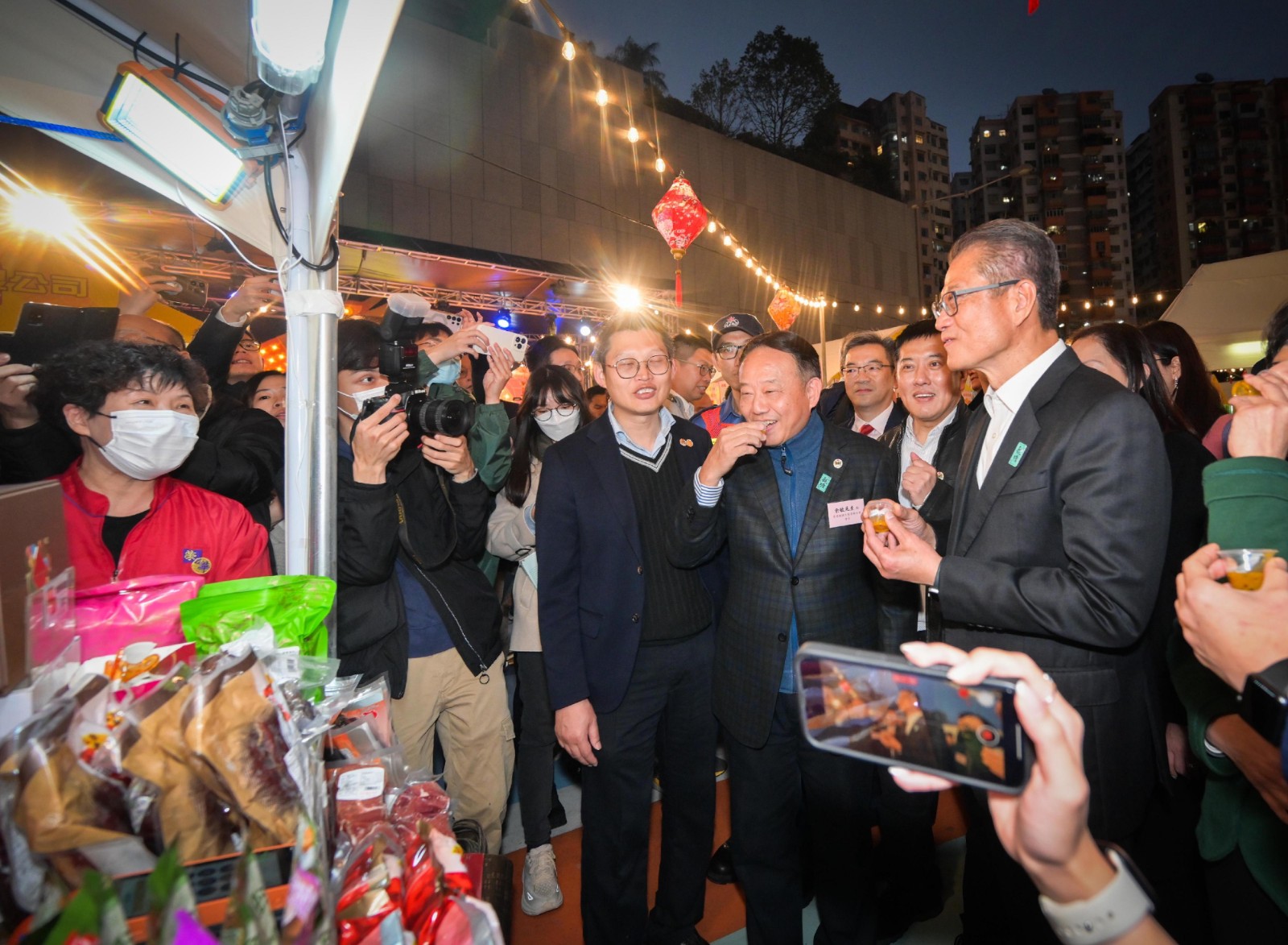 陳茂波表示,在今晚開幕典禮之前,夜市已經(jīng)試行幾天,不少市民已經(jīng)搶先到來。希望大家積極向身邊的親朋好友多多宣傳,支持觀塘區(qū)這個新春活動,前來辦年貨、享受街頭美食,一起共度佳節(jié)。