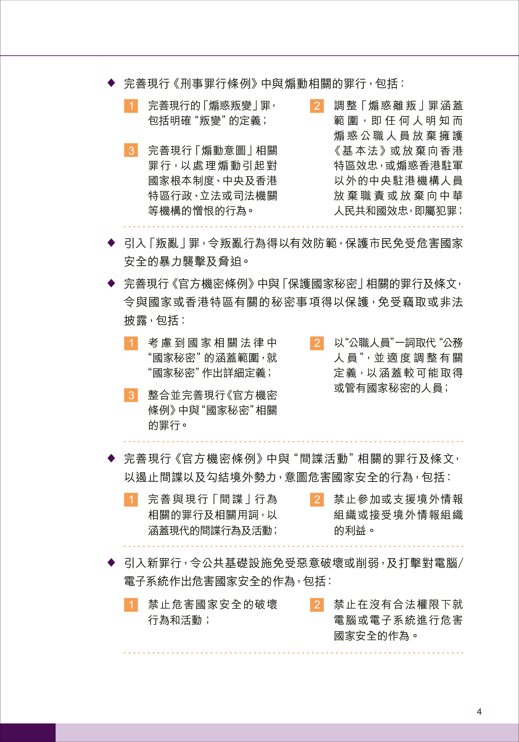 ●很多普通法司法管轄區(qū),例如美國(guó)、英國(guó)、加拿大、澳洲、新西蘭等西方國(guó)家及新加坡等,都制定了多部維護(hù)國(guó)家安全的法律。詳情可以參閲諮詢文件列出的例子,特別是第2.2至2.4段及附件二。