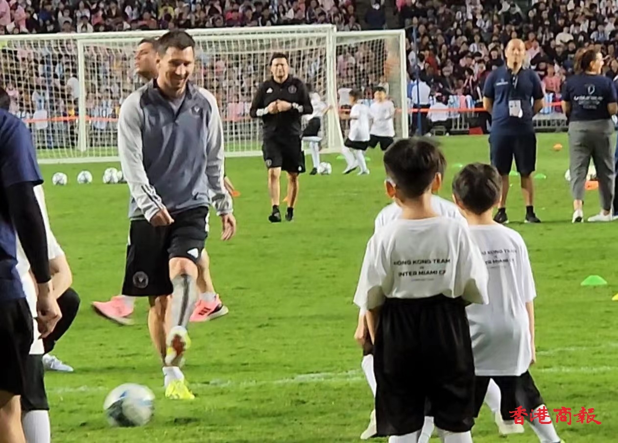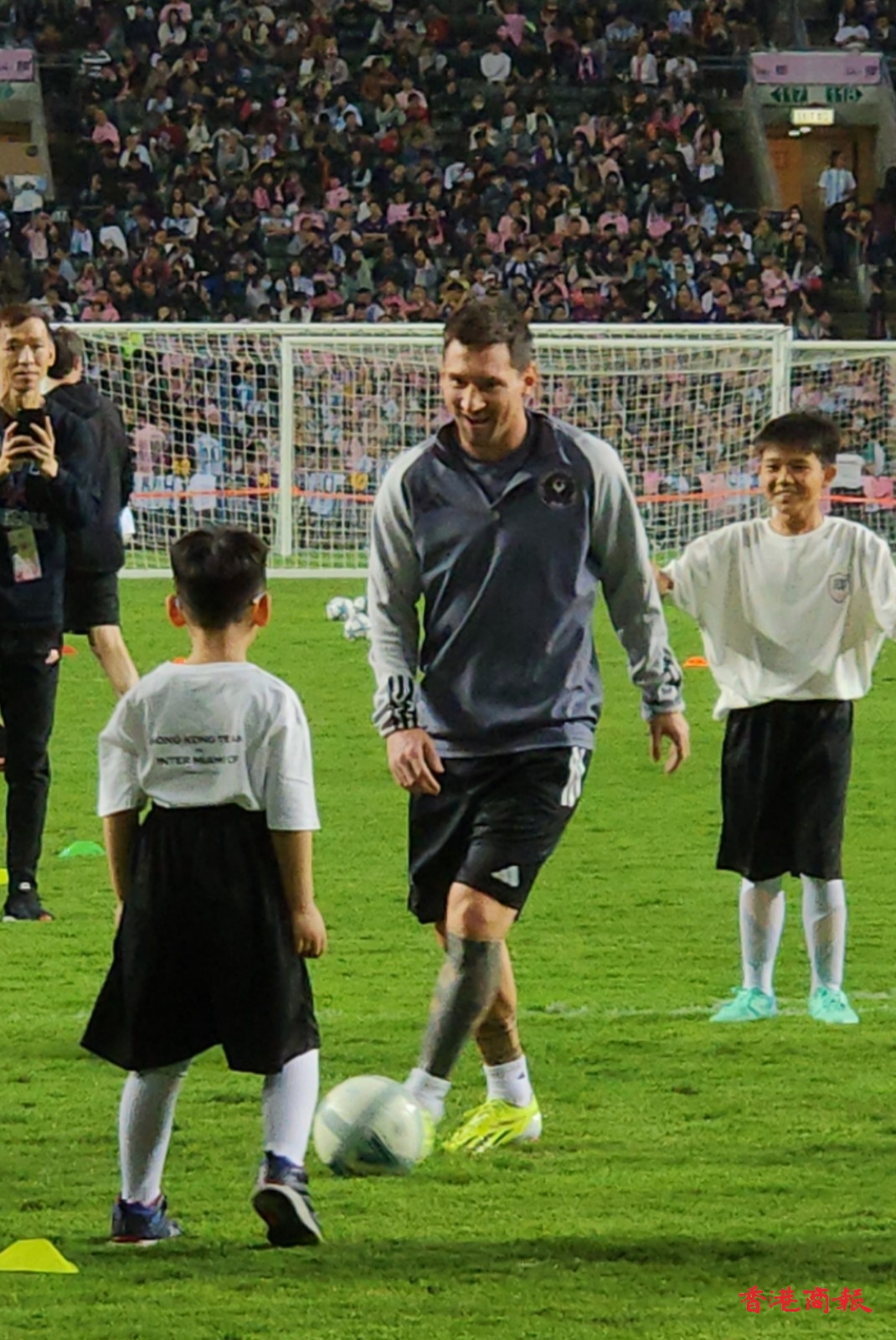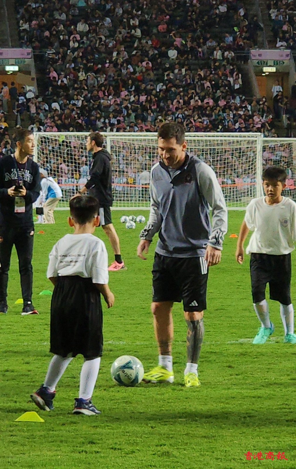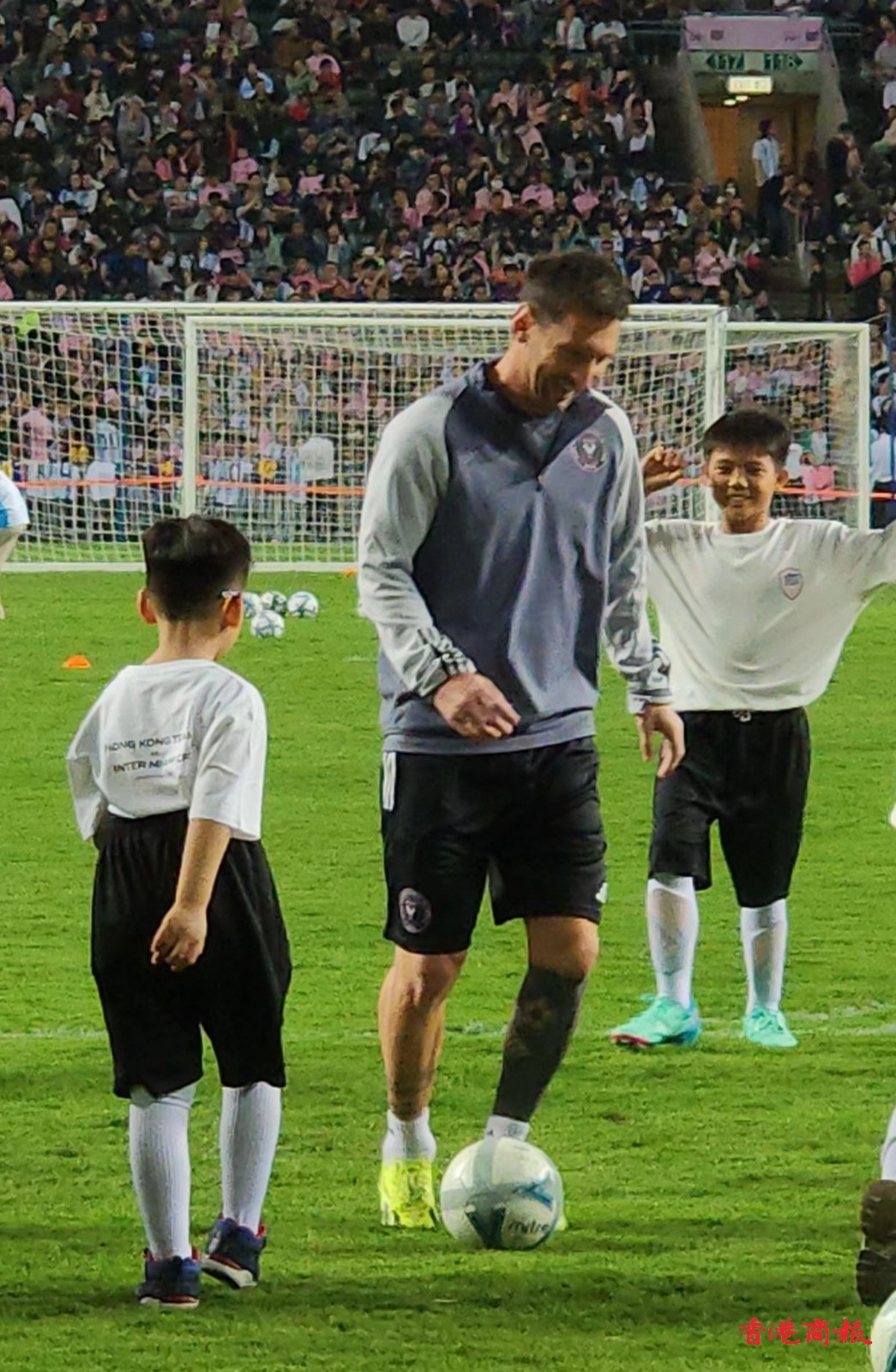美職聯(lián)球隊(duì)「國際邁阿密CF」今日(3日)下午在香港大球場進(jìn)行公開訓(xùn)練。期間,阿根廷球王美斯(內(nèi)地譯梅西)與香港的小朋友一起互動(dòng)踢球,本來比較嚴(yán)肅的他臉上不時(shí)露出笑容,和小朋友們打成一片,看來球王很喜歡小朋友哦!(記者 木子)