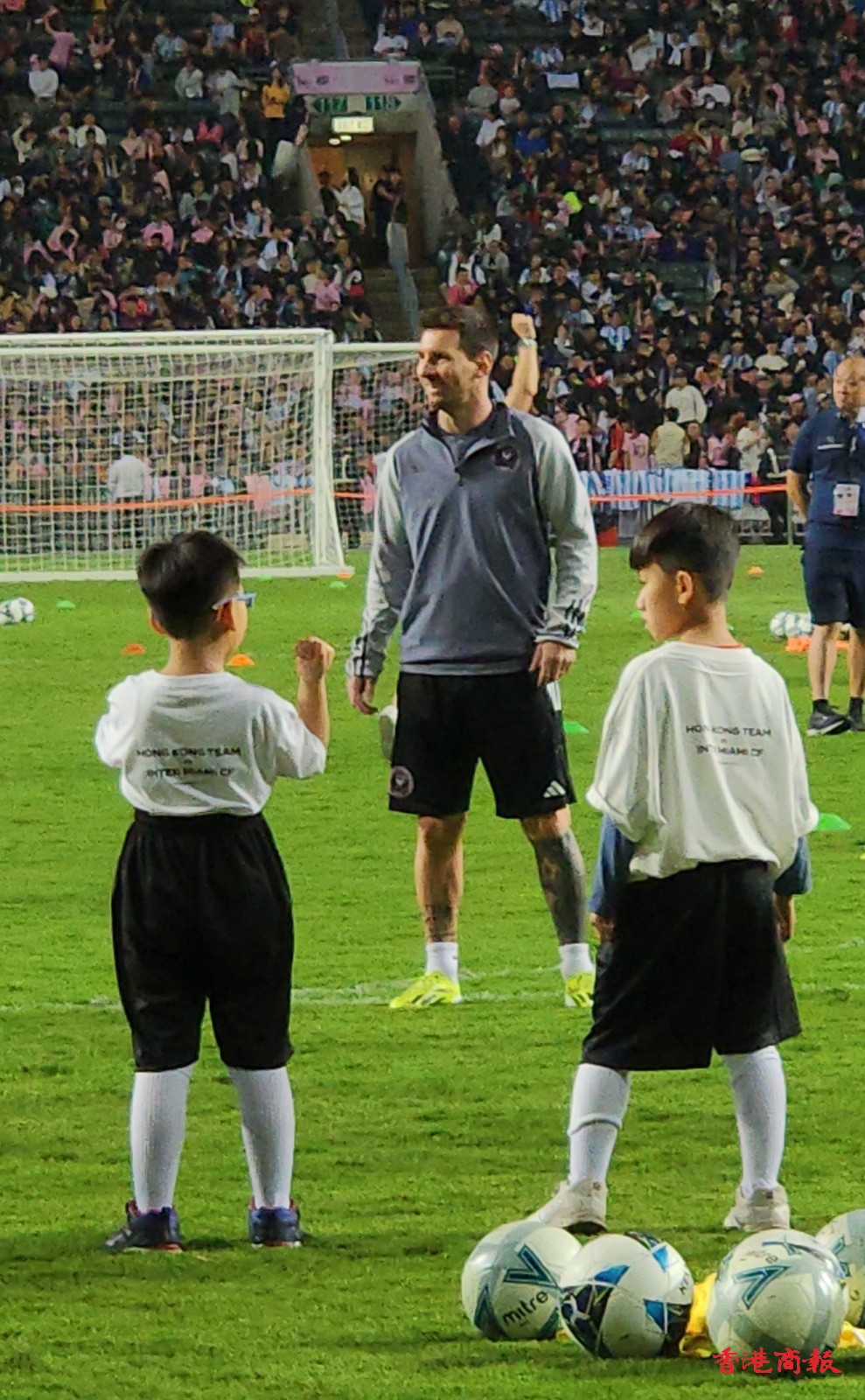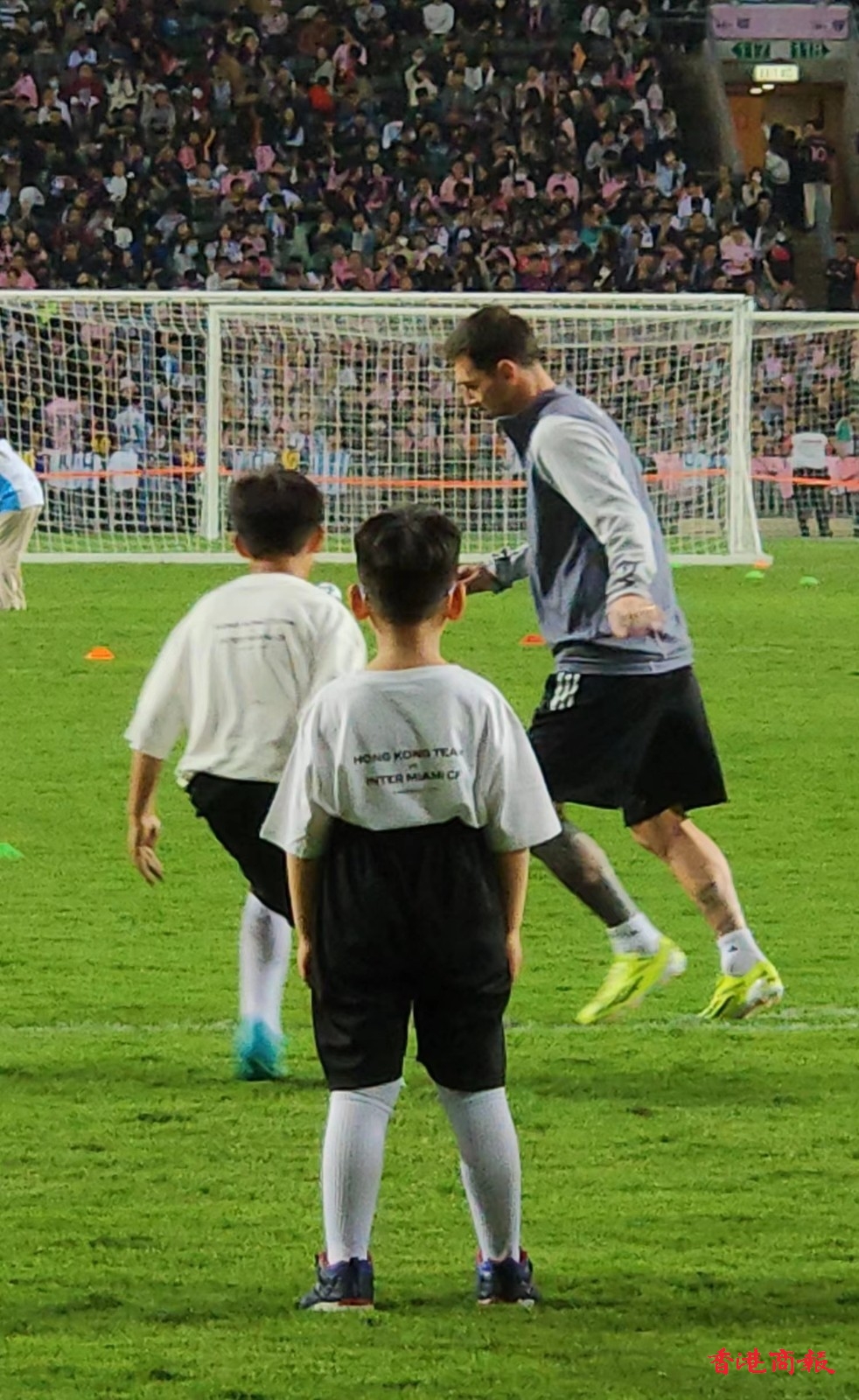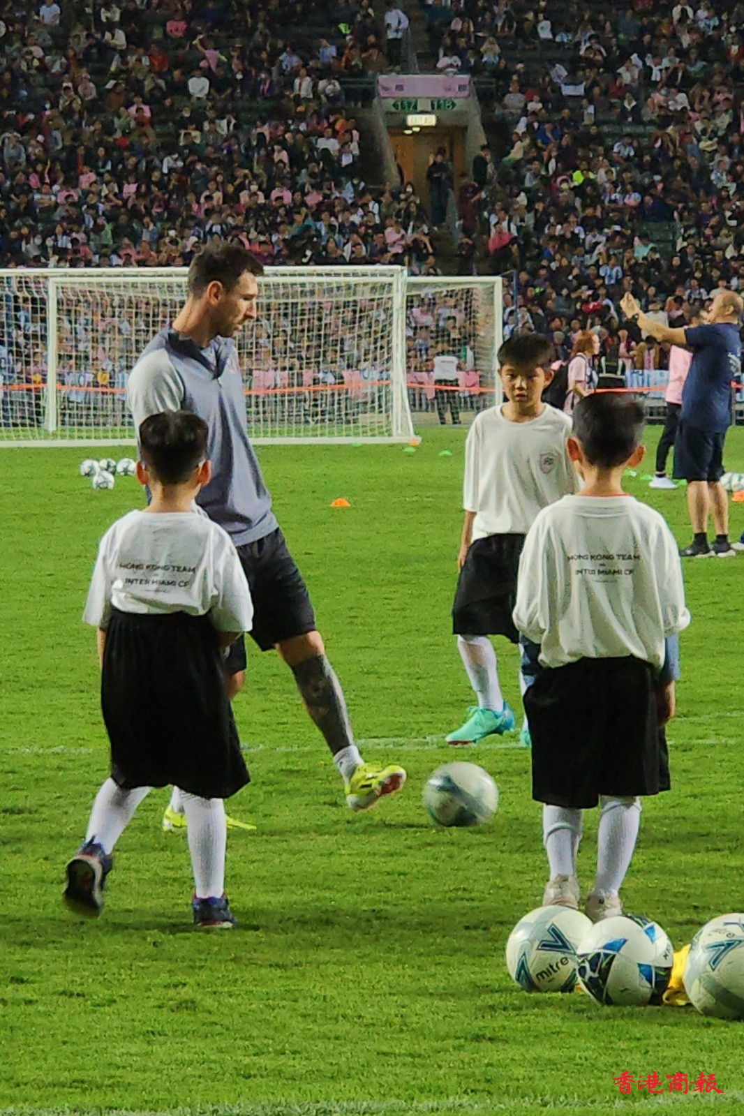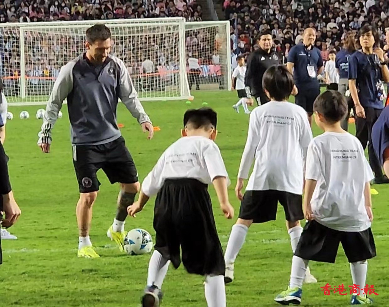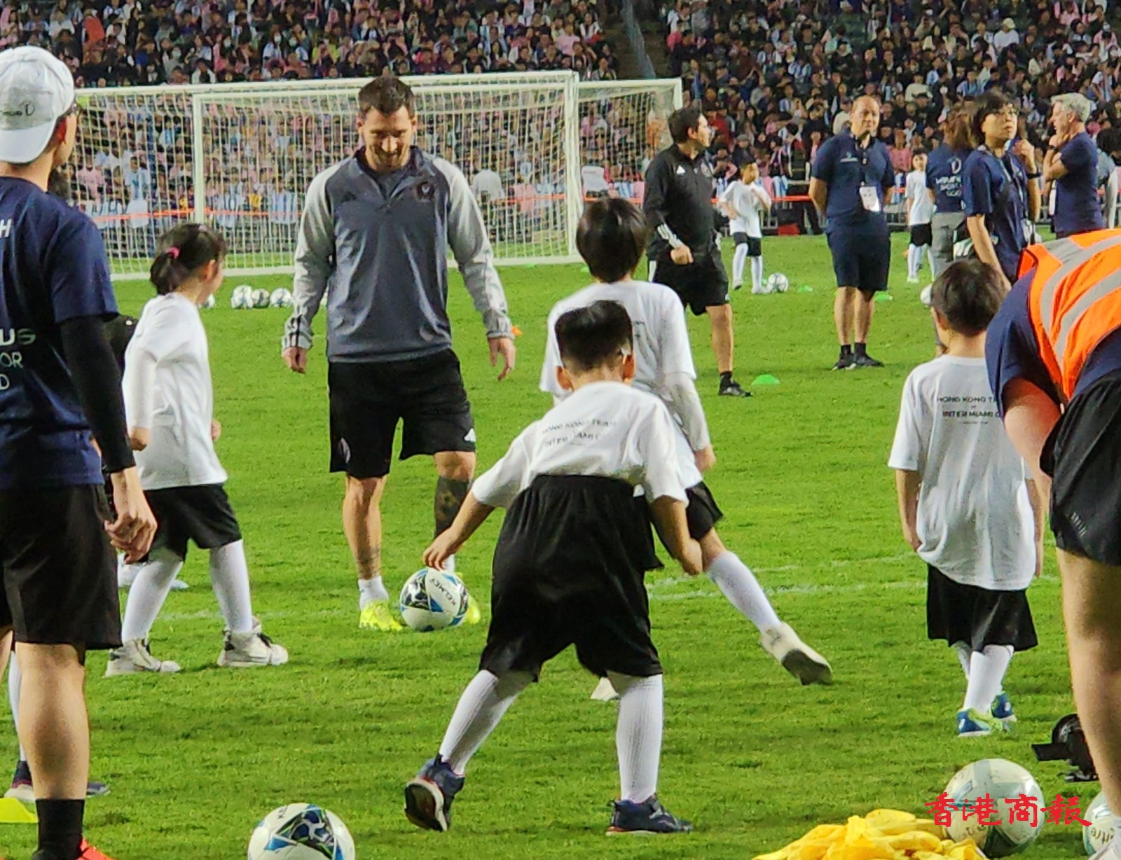 美職聯(lián)球隊(duì)「國際邁阿密CF」今日(3日)下午在香港大球場進(jìn)行公開訓(xùn)練。期間,阿根廷球王美斯(內(nèi)地譯梅西)與香港的小朋友一起互動(dòng)踢球,本來比較嚴(yán)肅的他臉上不時(shí)露出笑容,和小朋友們打成一片,看來球王很喜歡小朋友哦!(記者 木子)