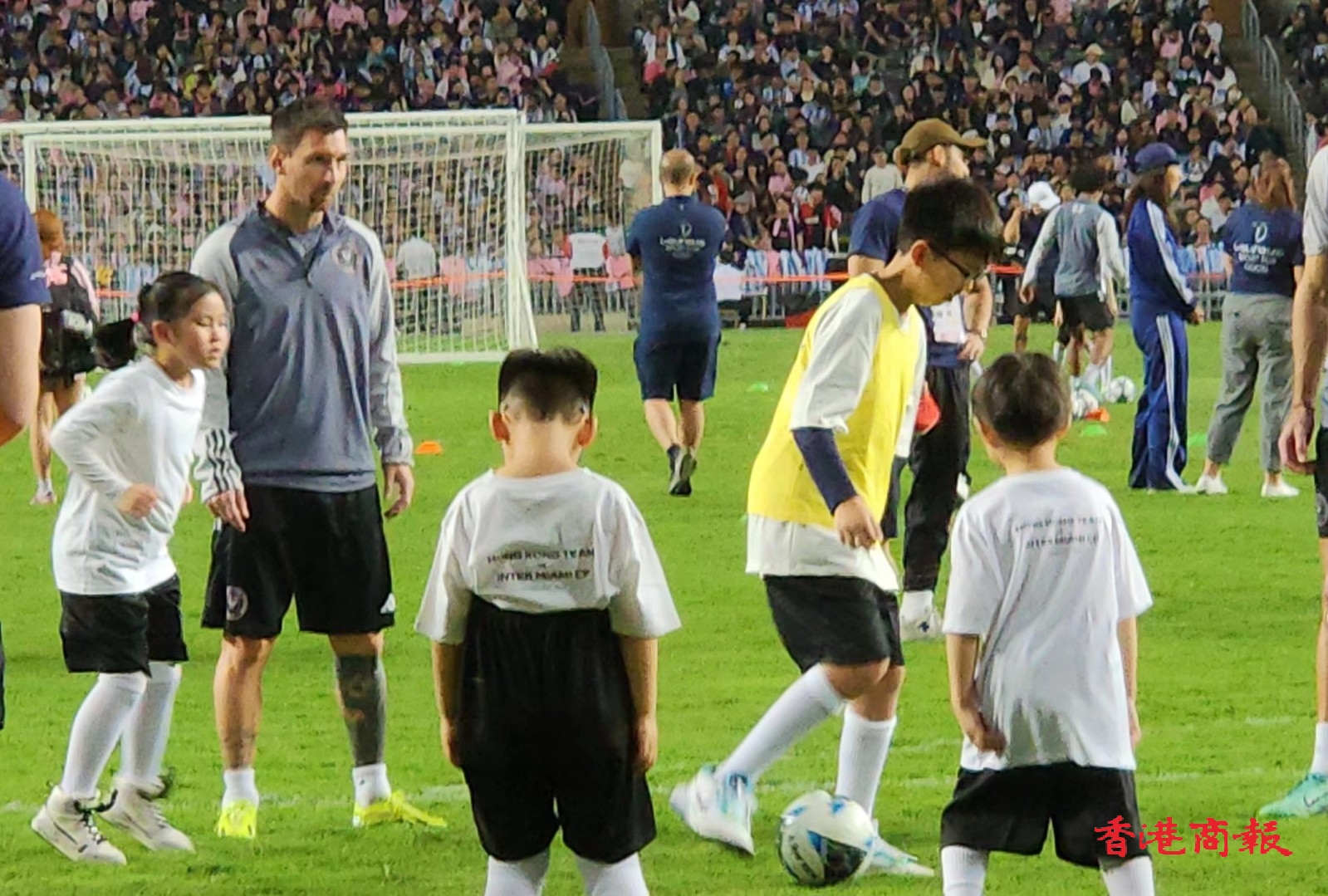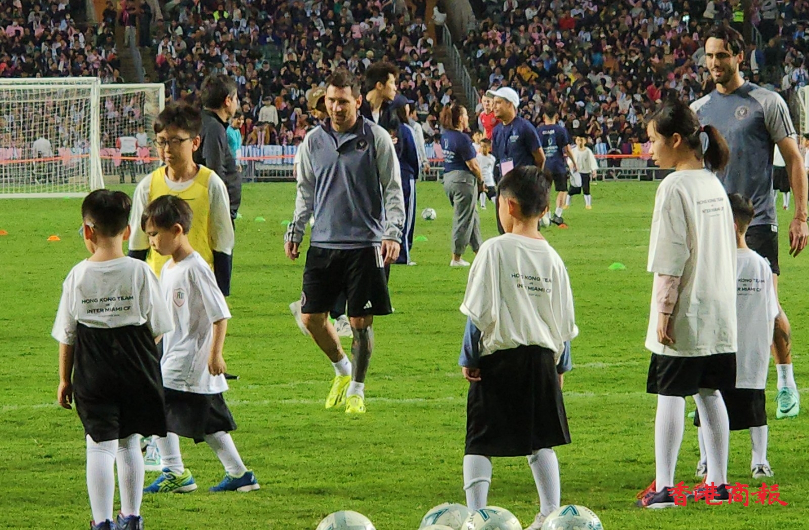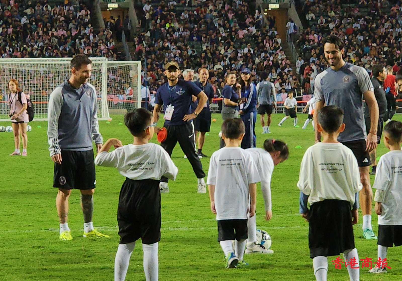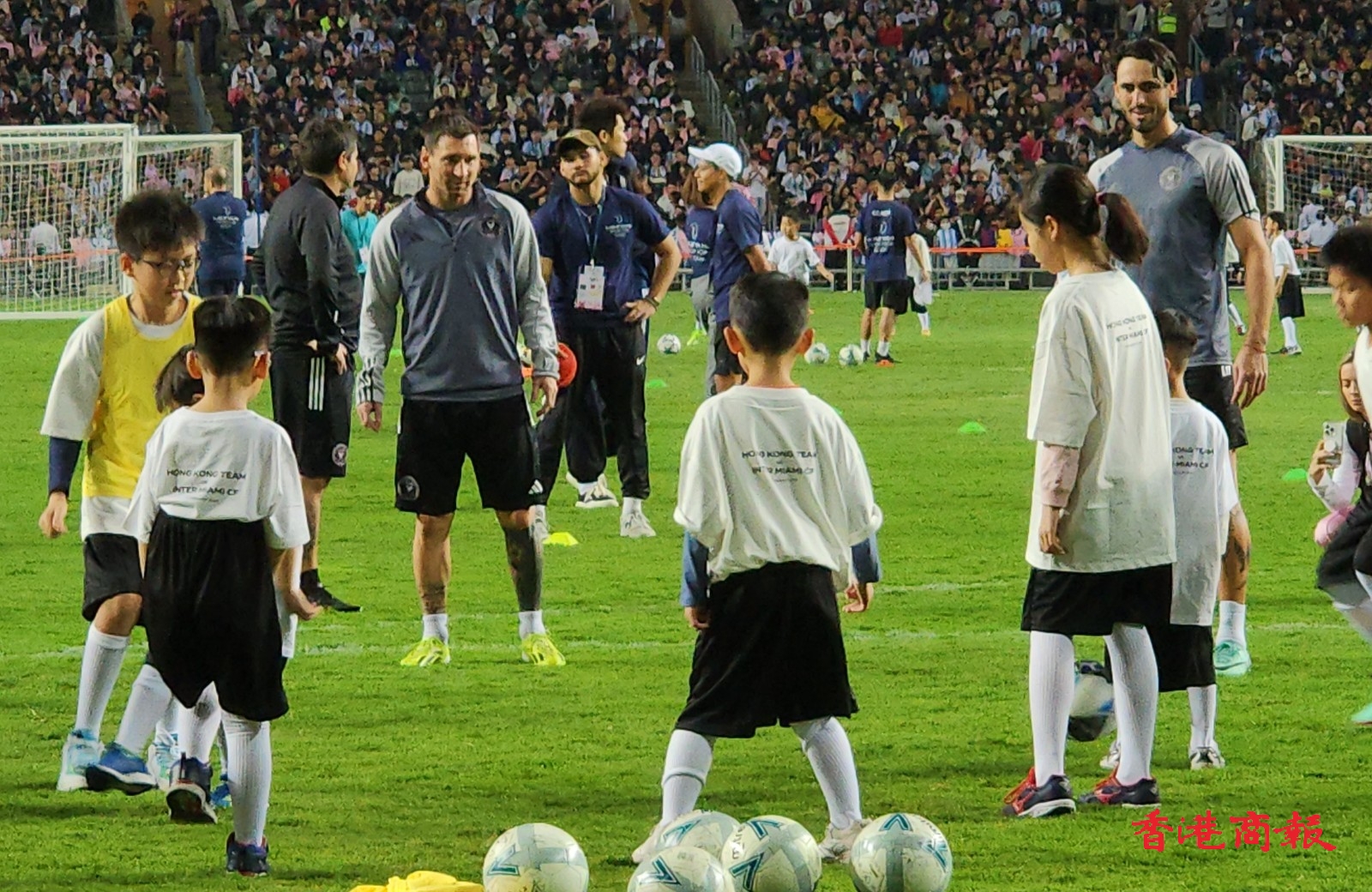 美職聯(lián)球隊(duì)「國際邁阿密CF」今日(3日)下午在香港大球場進(jìn)行公開訓(xùn)練。期間,阿根廷球王美斯(內(nèi)地譯梅西)與香港的小朋友一起互動(dòng)踢球,本來比較嚴(yán)肅的他臉上不時(shí)露出笑容,和小朋友們打成一片,看來球王很喜歡小朋友哦!(記者 木子)