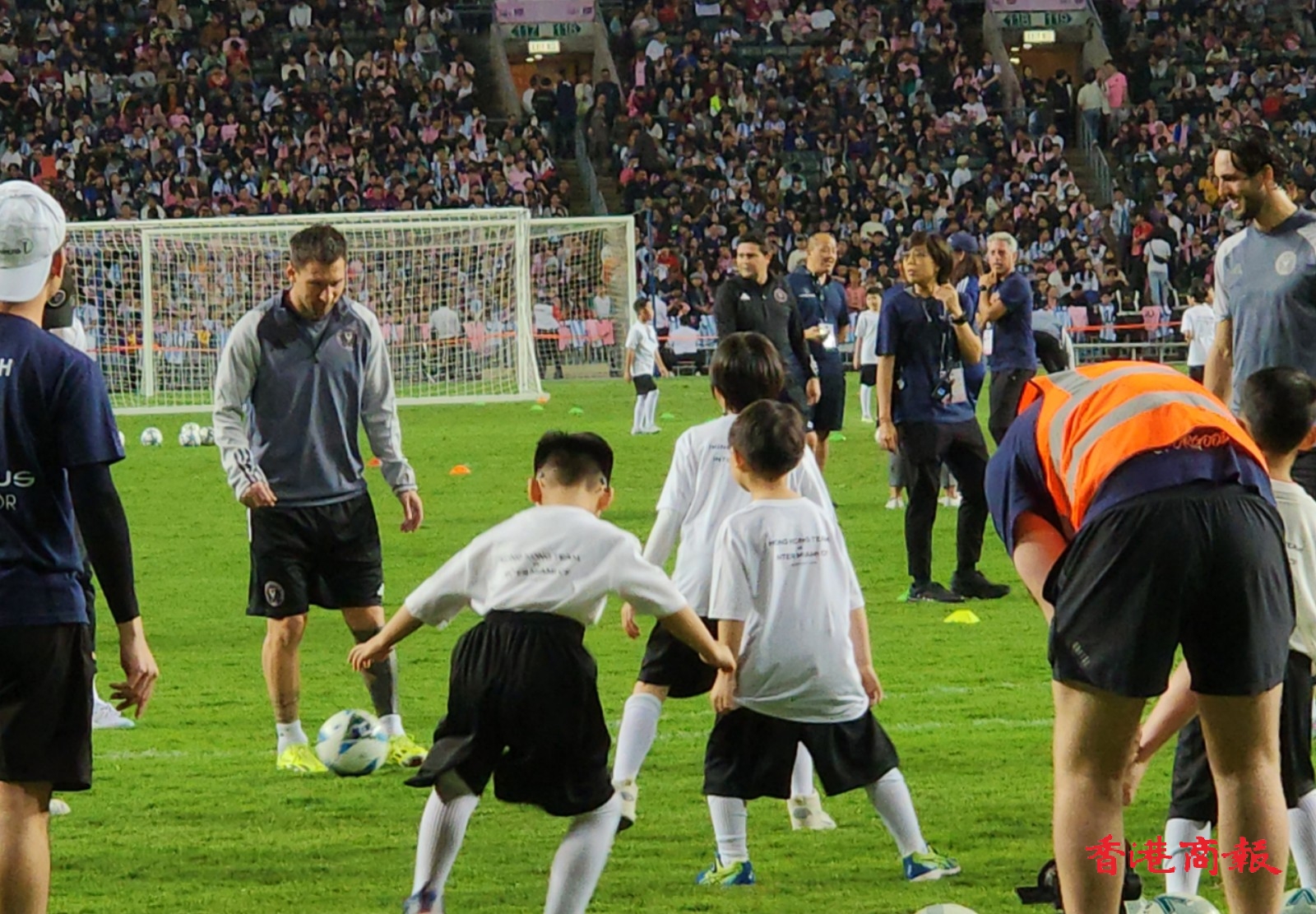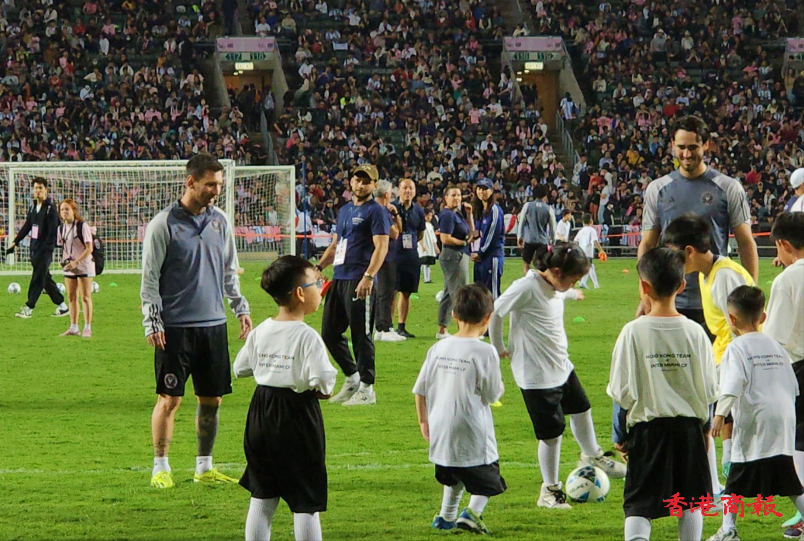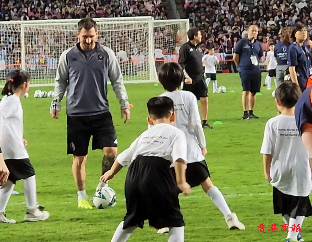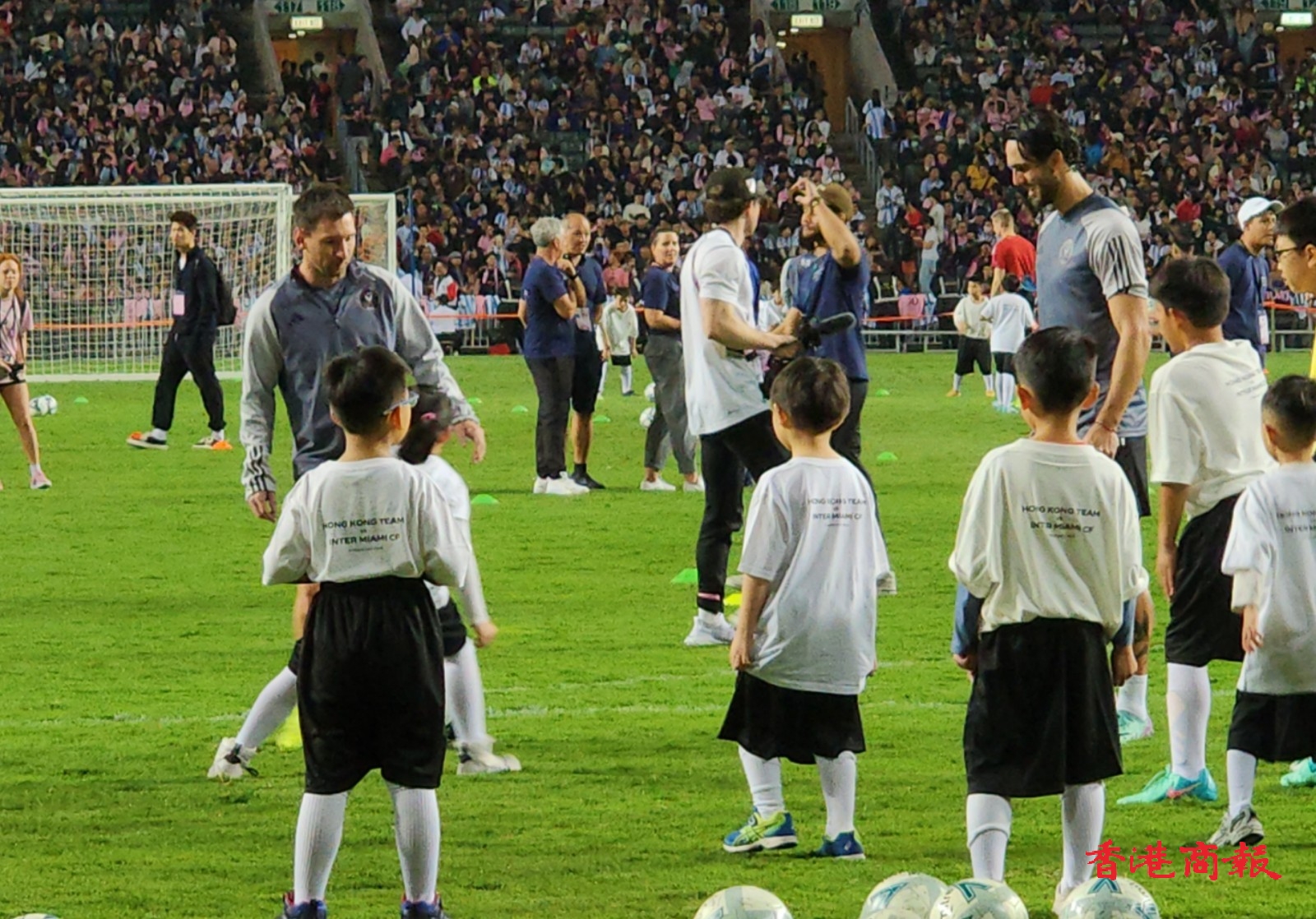 美職聯(lián)球隊(duì)「國際邁阿密CF」今日(3日)下午在香港大球場進(jìn)行公開訓(xùn)練。期間,阿根廷球王美斯(內(nèi)地譯梅西)與香港的小朋友一起互動(dòng)踢球,本來比較嚴(yán)肅的他臉上不時(shí)露出笑容,和小朋友們打成一片,看來球王很喜歡小朋友哦!(記者 木子)