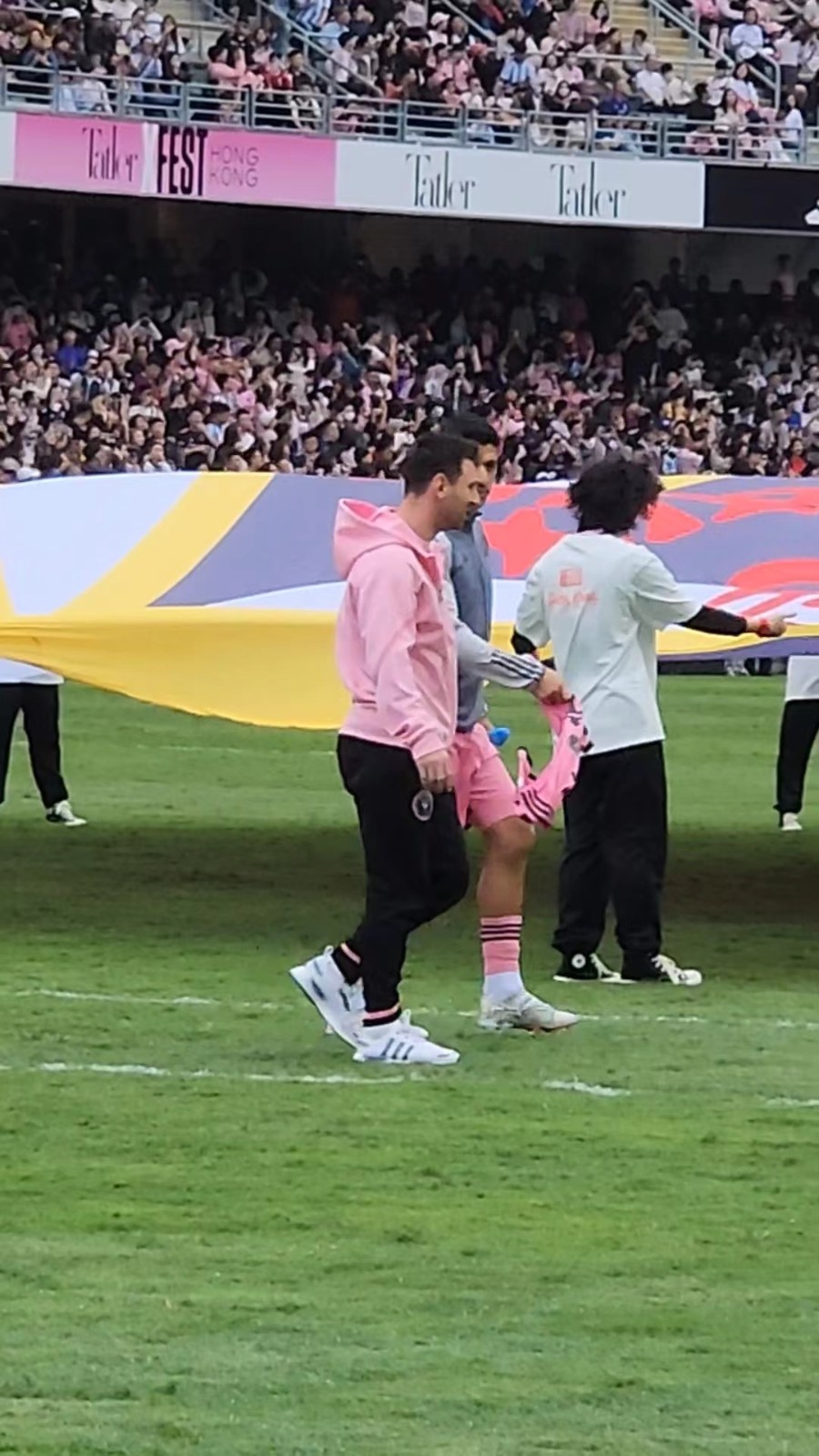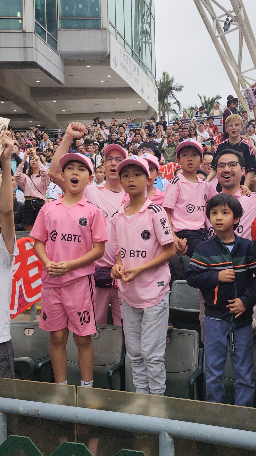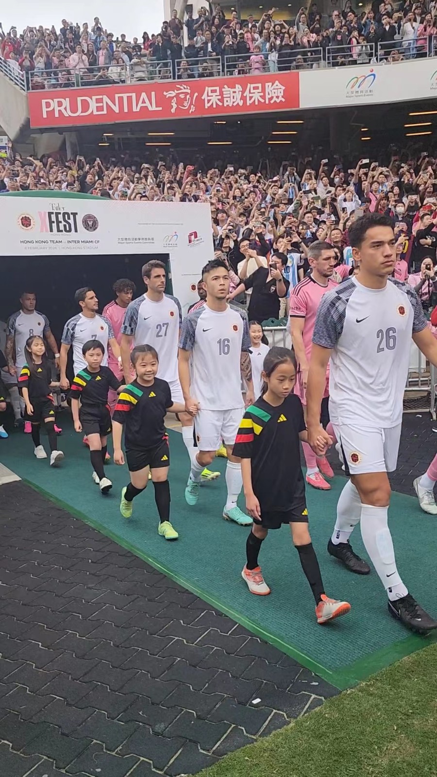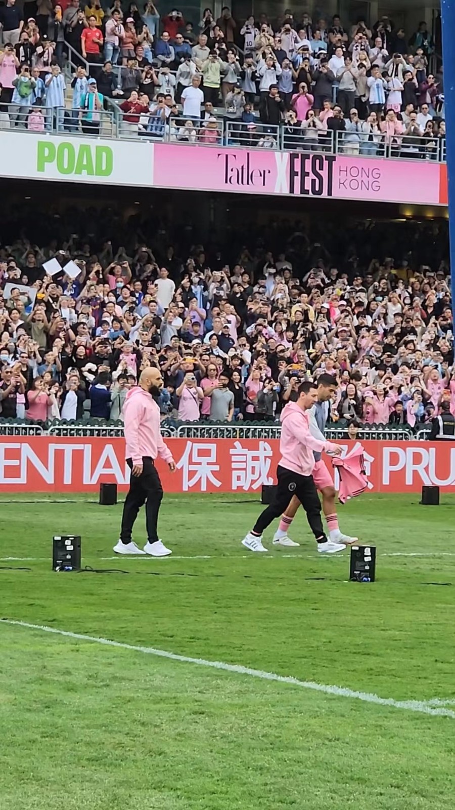 萬眾矚目的國際邁阿密,和香港隊的表演賽正在大球場火熱上演,入場的觀眾大部分都穿著粉紅色的球衣,今天的安保比昨天嚴厲,入場之前都要經過安檢,水一律不準帶進去,很多人都不知道,要在門口寄放水壺。多圖放送↓