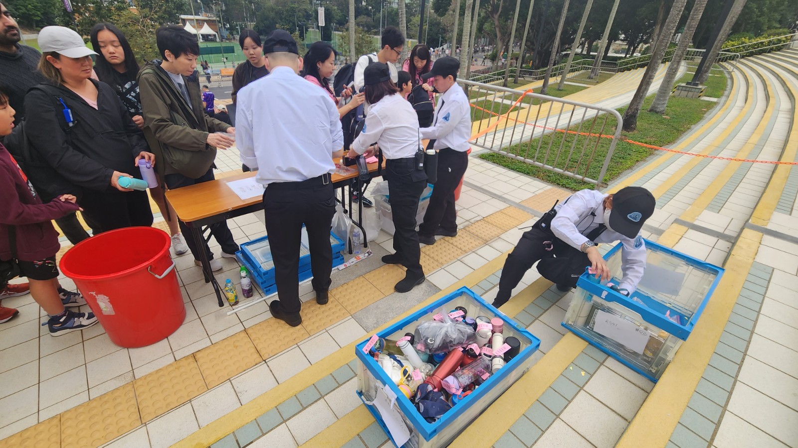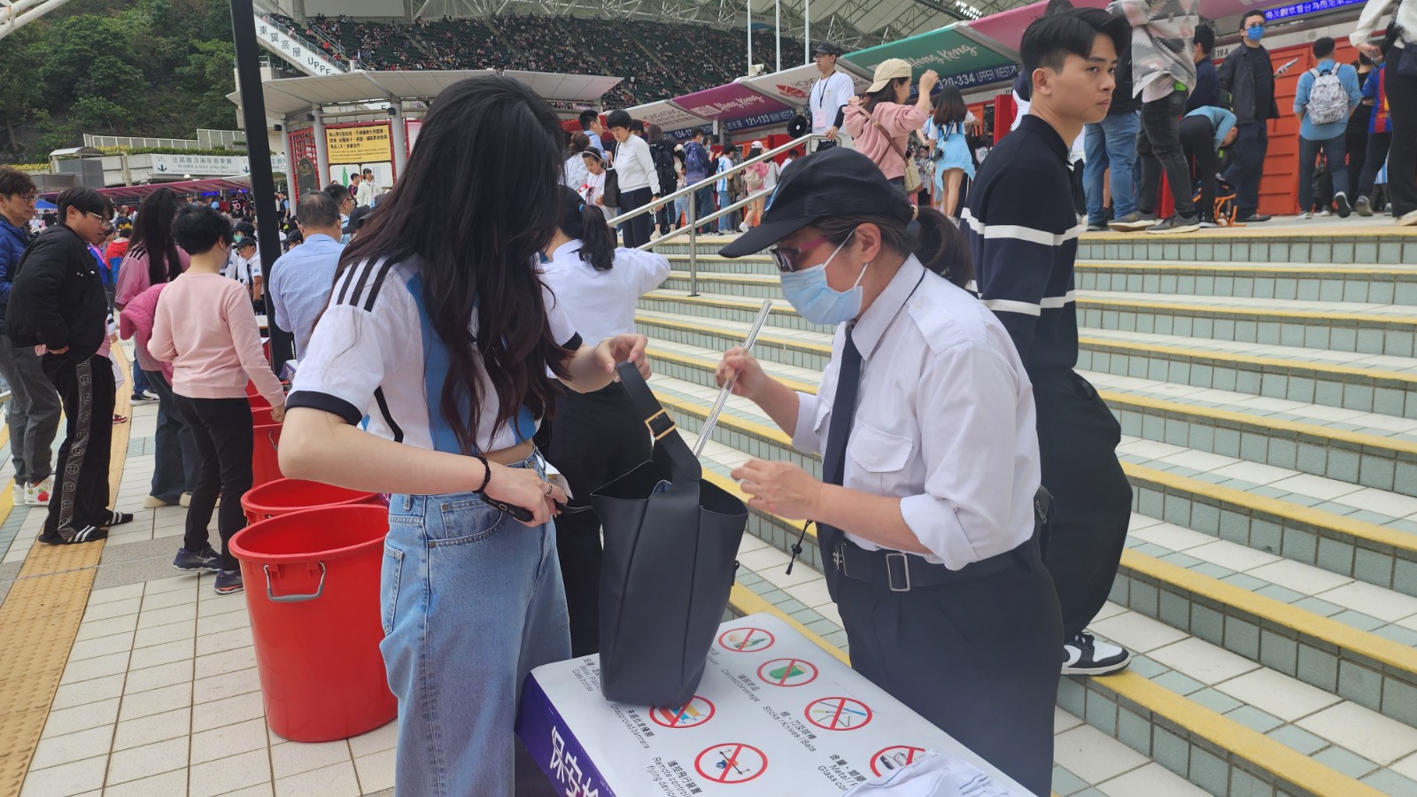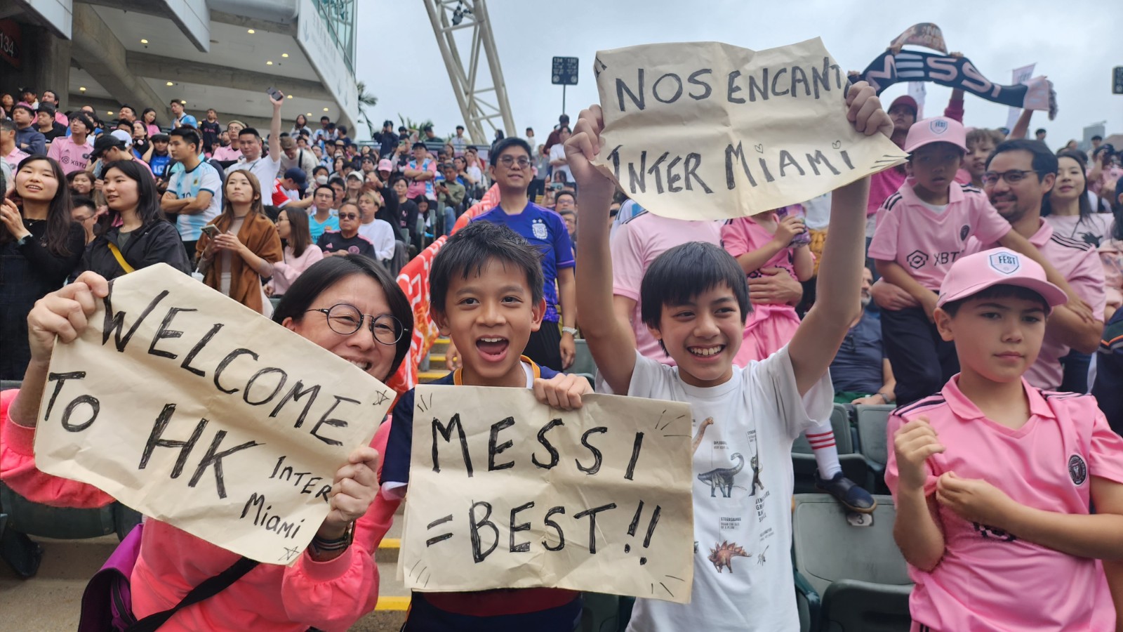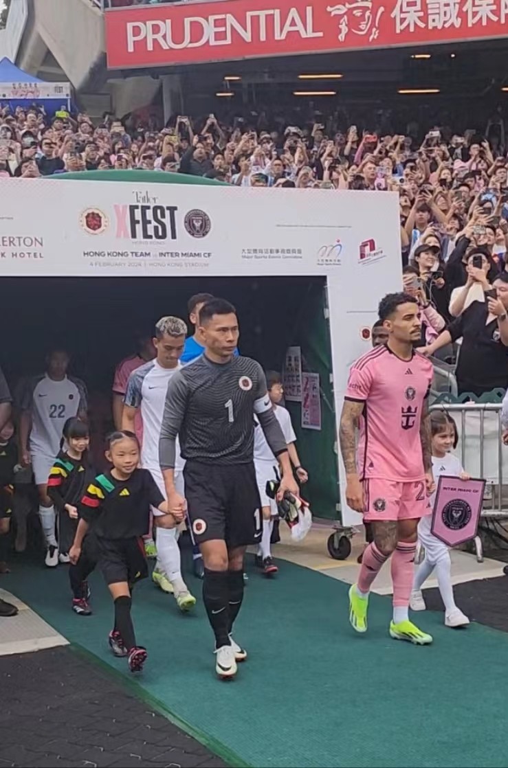 萬眾矚目的國際邁阿密,和香港隊的表演賽正在大球場火熱上演,入場的觀眾大部分都穿著粉紅色的球衣,今天的安保比昨天嚴厲,入場之前都要經過安檢,水一律不準帶進去,很多人都不知道,要在門口寄放水壺。多圖放送↓