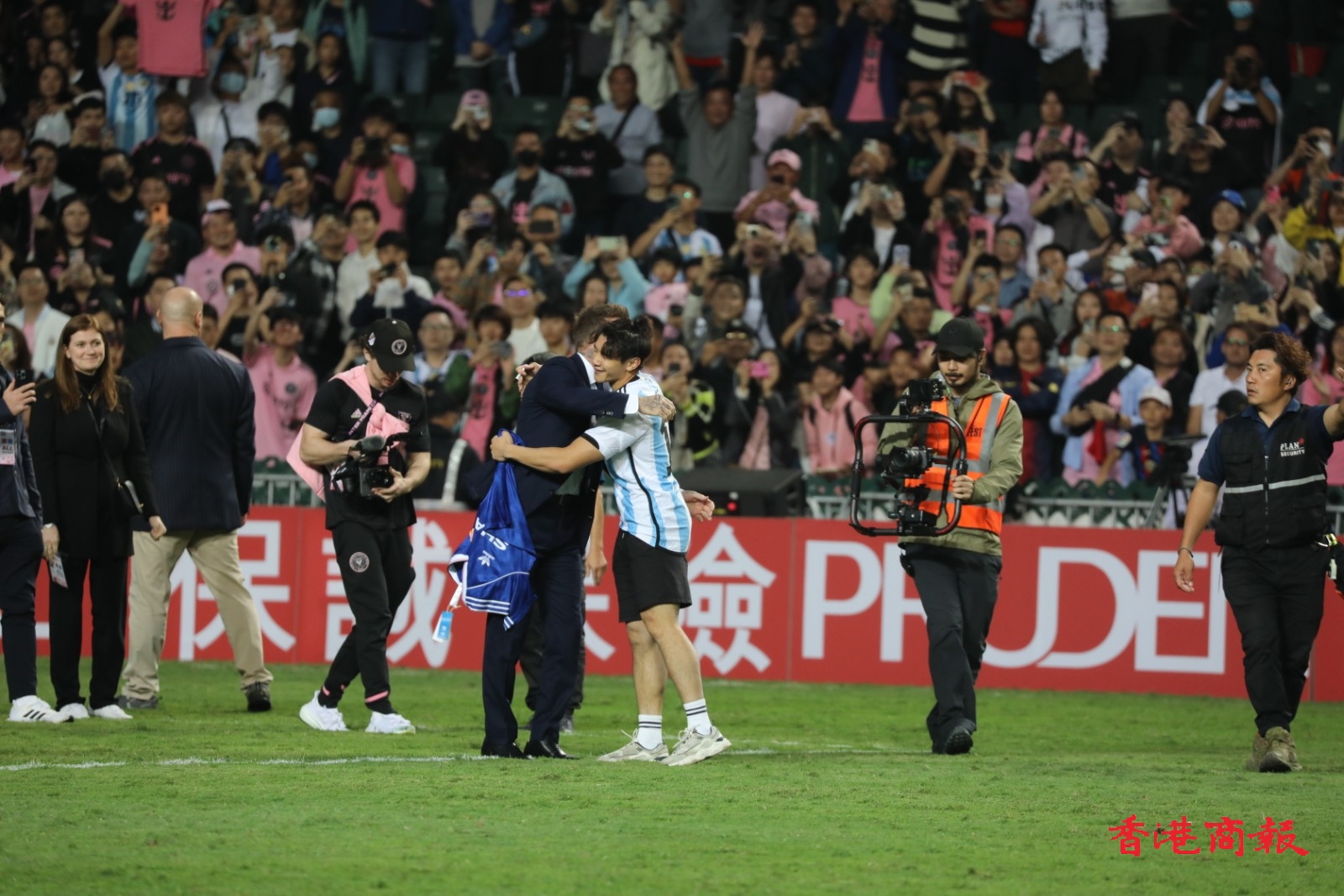 粉絲衝下場(chǎng)為要得碧咸簽名,碧咸擁抱回應(yīng)粉絲,並為其簽名。
