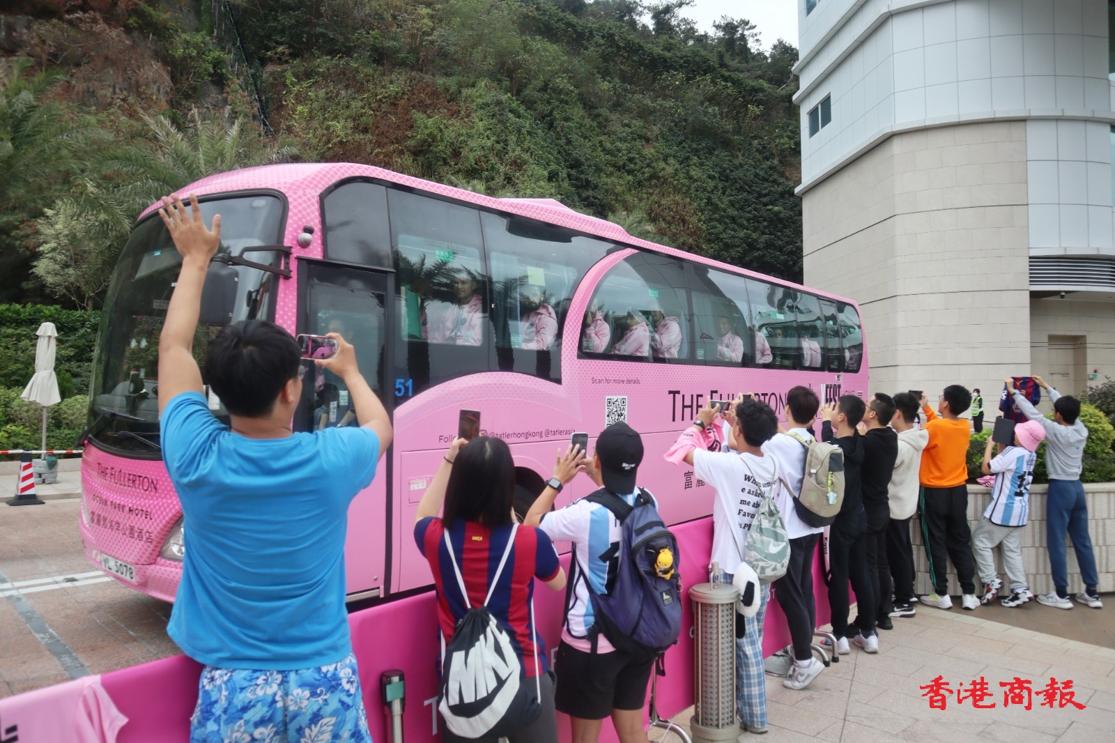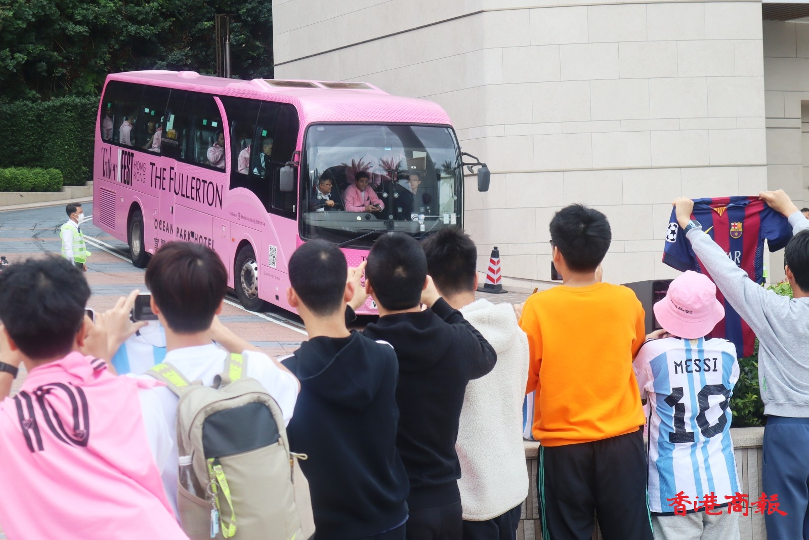 美斯和球隊(duì)今日(5日)下午離開香港,有十?dāng)?shù)位粉絲到酒店門外等候,相比起第一天在場(chǎng)粉絲人數(shù)相差甚遠(yuǎn)。