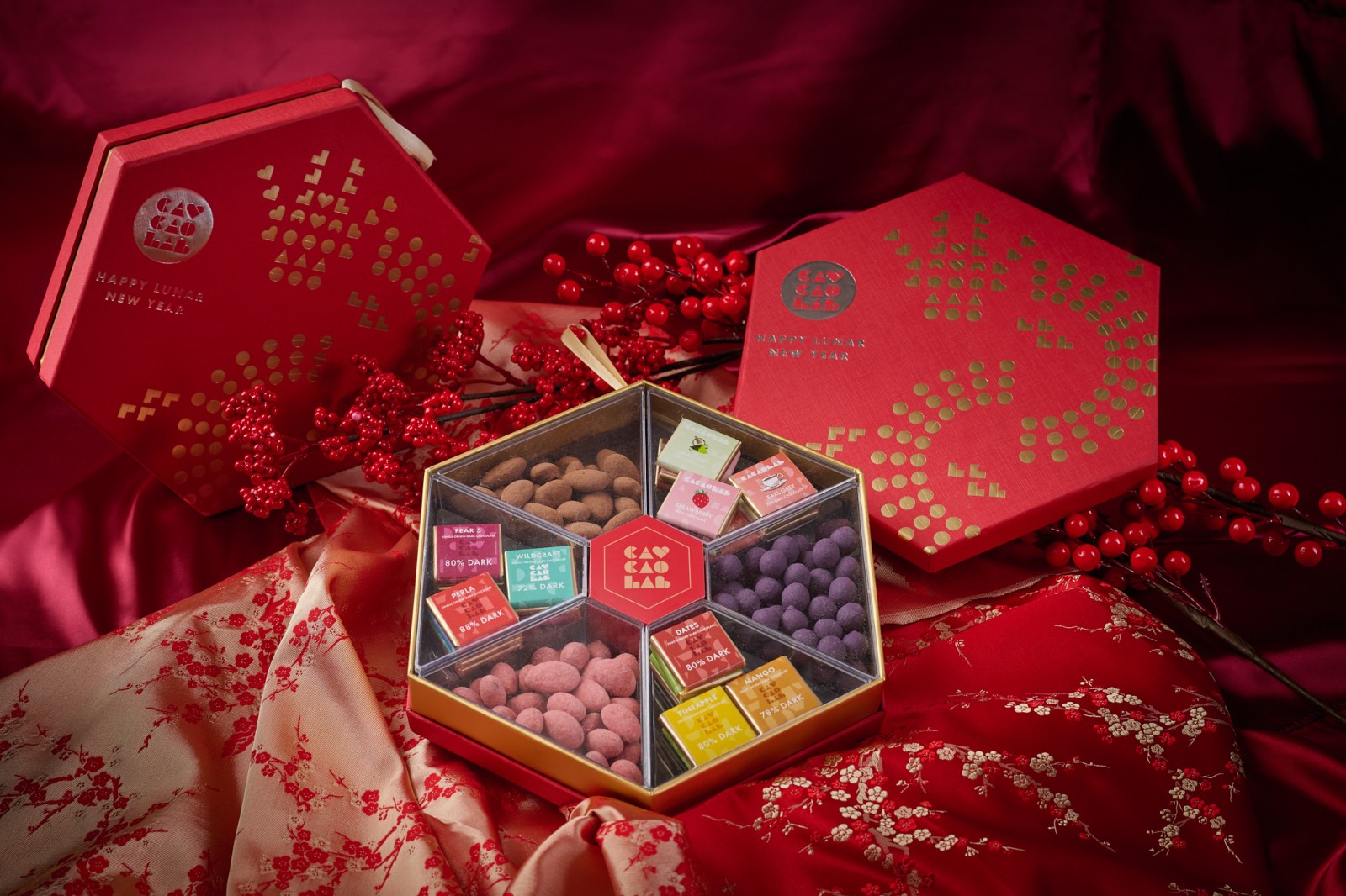 若單一口味朱古力未能表達(dá)心意,可選擇3款情人節(jié)朱古力禮盒。禮盒內(nèi)包含了各種口味朱古力及不同類型的可可製品,可按性格送出合適的朱古力、或玩味、味道兼?zhèn)涞亩Y盒。如「多彩綜合堅(jiān)果」,美國杏仁與法國榛子被不同風(fēng)味的朱古力包覆,而朱古力使用來自日本、新西蘭和臺灣三地進(jìn)口的凍果乾粉製作,有水果、玫瑰花的香氣。充滿趣味感的「XOXO朱古力餅」,心形的士多啤梨朱古力餅乾由新西蘭的士多啤梨凍乾粉和奶粉製成,濃郁奶香融入士多啤梨,並鋪在多明尼加可可製成的餅乾上,酸甜清新;「X」形的抹茶朱古力餅乾加入了日本抹茶粉與新西蘭奶粉,並鋪在多明尼加可可製成的餅乾,質(zhì)地滑順口味香濃,帶有回甘香氣。禮盒採用井字形的分隔,送贈後還可一同遊戲。