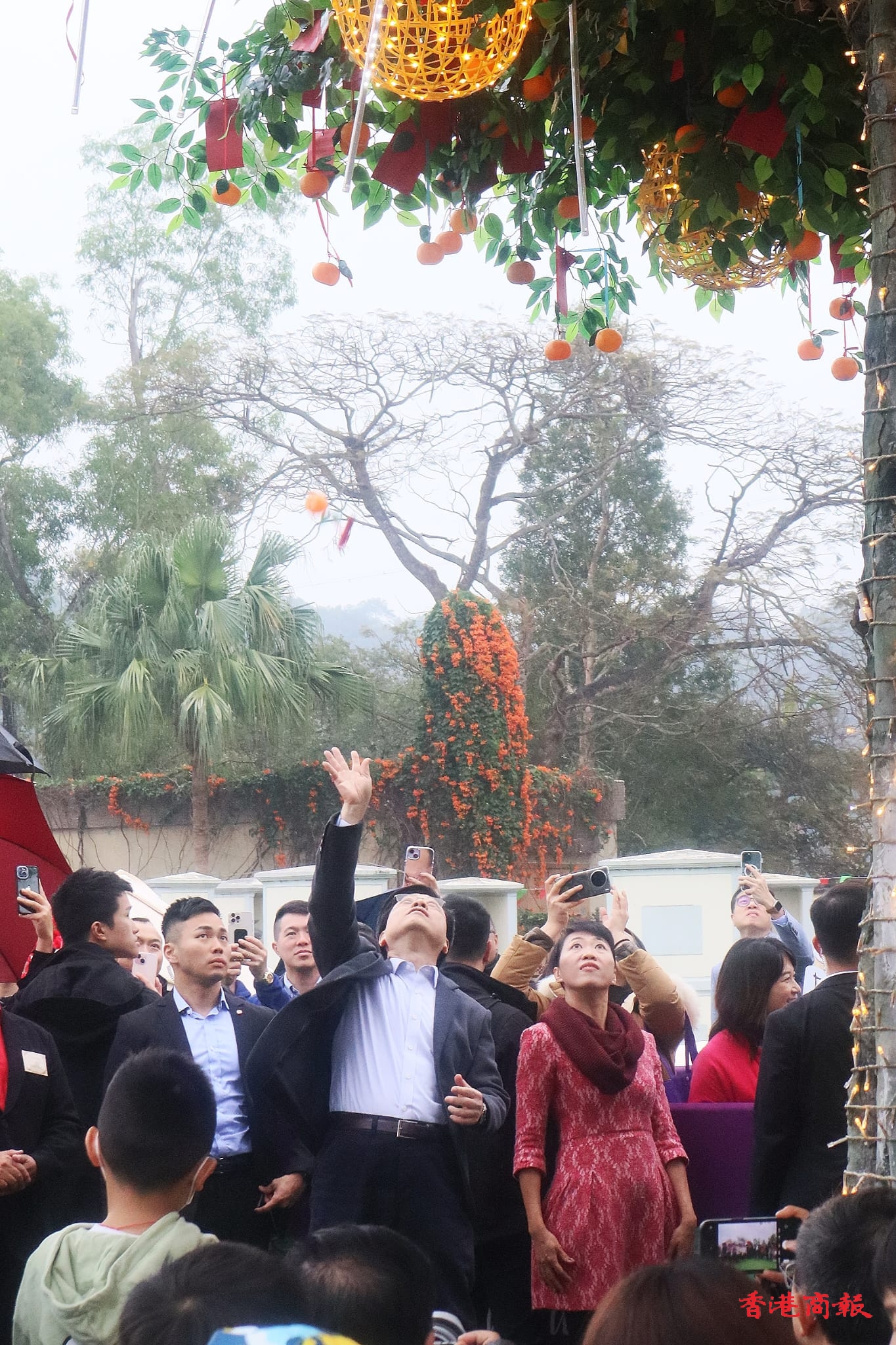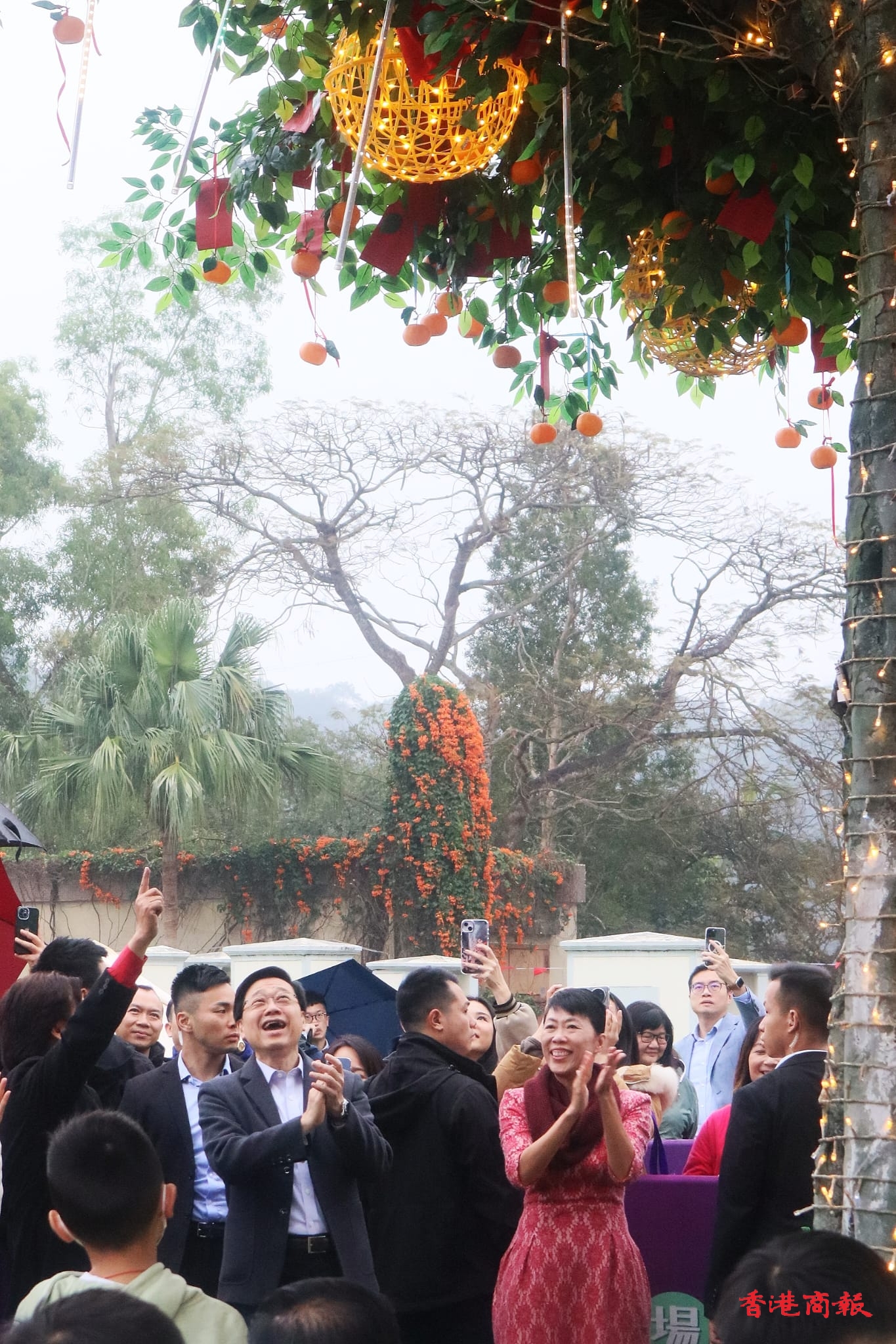 龍年將至,行政長官李家超今日(7日)率領民政及青年事務局局長麥美娟、民政事務總署署長張趙凱渝,以及大埔關愛隊進行新春家訪;隨後,李家超轉到林村與百多位「老友記」吃團年飯,大家圍著熱騰騰的盆菜,邊吃邊聊天,氣氛熱鬧;之後,李家超轉到許願樹廣場與數(shù)十位小學生一起拋寶碟,他在寶碟寫上「香港龍騰新程,市民身體健康」,並一次成功。李家超表示,他與各主要官員、關愛隊會在歲前落區(qū)家訪及派福袋,18區(qū)也會有「日夜都繽紛」活動,其中林村更首創(chuàng)夜光許願樹和發(fā)光寶牒供市民拋擲許願。