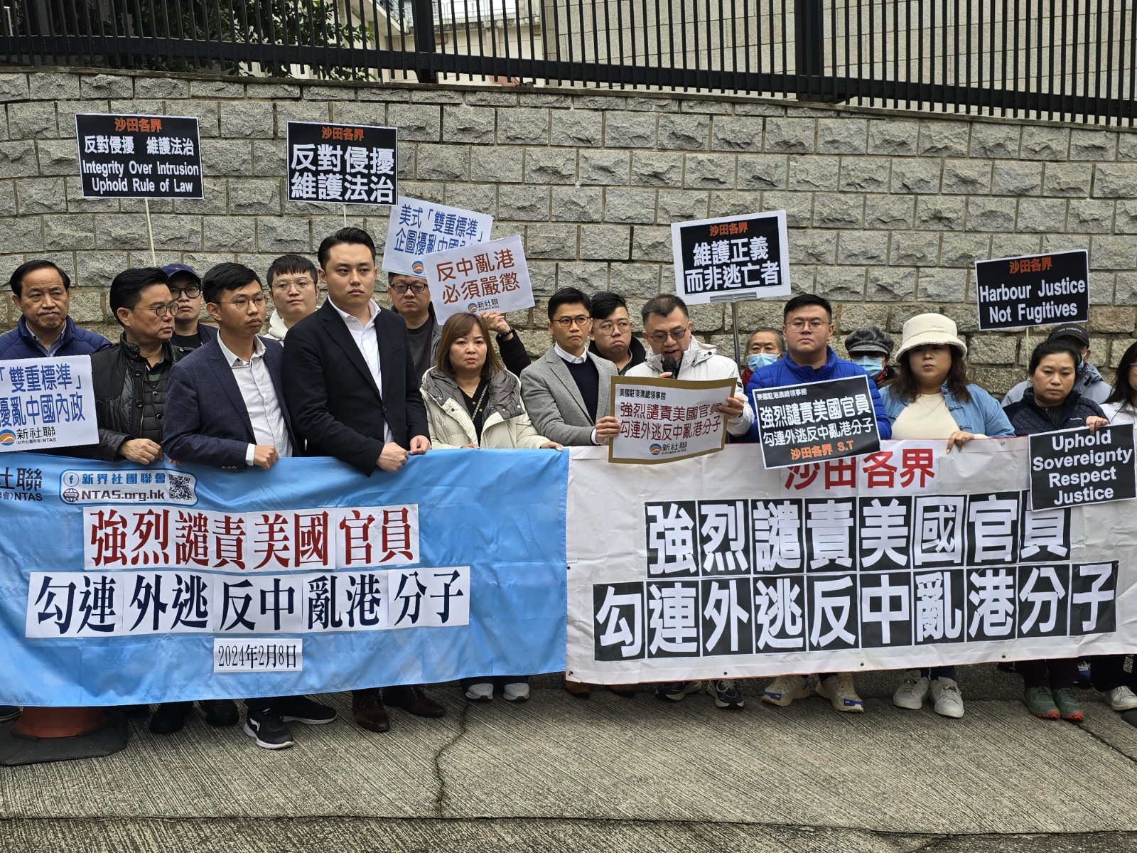 2月8日,中國(guó)香港同心護(hù)港總會(huì)、「反黑金反港獨(dú)」關(guān)注組、海南社團(tuán)總會(huì)等多個(gè)團(tuán)體到美國(guó)領(lǐng)事館抗議,美國(guó)國(guó)務(wù)院負(fù)責(zé)東亞和太平洋事務(wù)的助理國(guó)務(wù)卿康達(dá),公然接見(jiàn)違反國(guó)安法的反中亂港逃美分子「郭鳳儀、袁弓夷、許穎婷、邵嵐」,稱(chēng)絕不能容忍及不容許美國(guó)勢(shì)力干預(yù)中國(guó)香港法治和內(nèi)政!