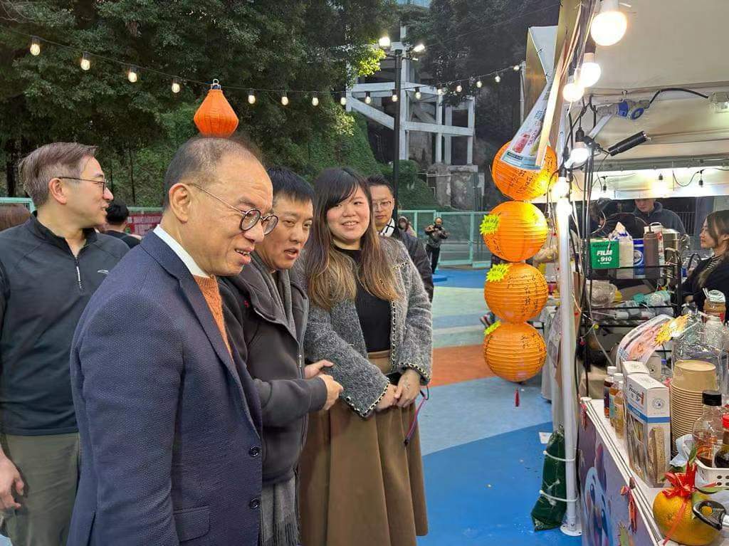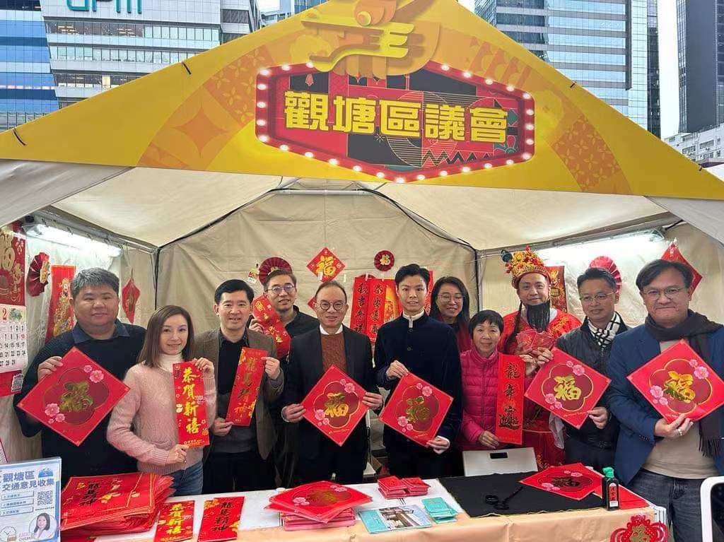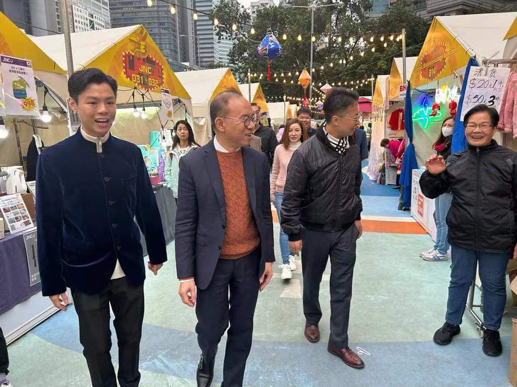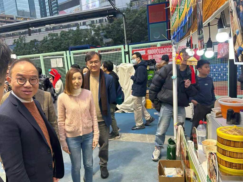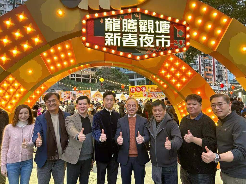 多名觀塘區(qū)區(qū)議員陪同曾局長和胡副局長到訪夜市多個攤位,他們祝賀檔主生意興隆,市民身體健康,人人心想事成,龍騰虎躍。