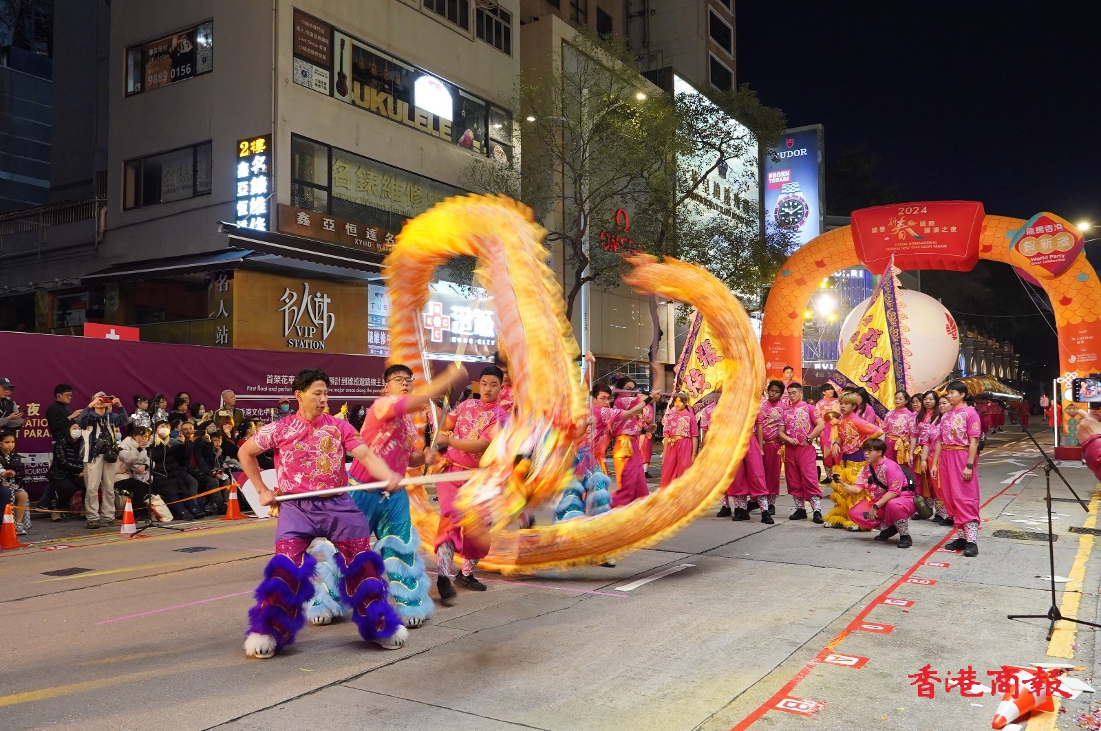 龍年大年初一,「國泰新春國際匯演之夜」以別開生面的花車巡遊及表演,為龍年打響頭陣送上新春祝福。龍在中國象徵尊貴吉祥,充滿活力,一輛輛花車有如喜氣洋洋的「車龍」,盛載連連好運遊走於尖沙咀,配合30多支動感十足的表演團隊施展渾身解數(shù)演出。觀眾參與這個環(huán)球派對,感受傳統(tǒng)節(jié)日的動感魅力,一同迎春接福。(記者 馮俊文)