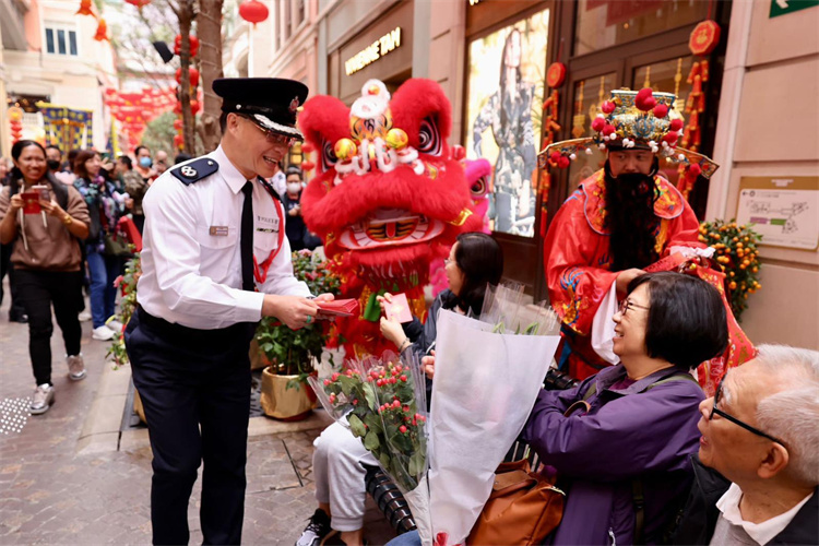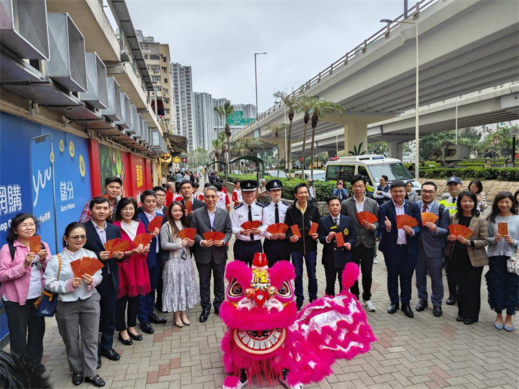 警方表示,港島總區(qū)聯(lián)同香港交通安全隊(港島及離島區(qū))於今日(16日)初七人日舉辦「甲辰醒獅賀新歲暨道路安全宣傳活動」,警務人員聯(lián)同多區(qū)民政事務專員、區(qū)議員及交通安全隊成員走訪港島多處,向市民拜年並派發(fā)紀念品,推廣道路安全?;顒悠陂g更有醒獅表演,為市民帶來龍年的幸運和祝福,吸引大批市民拍照留念。