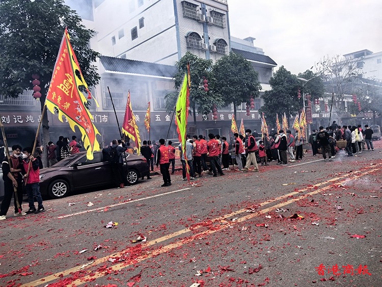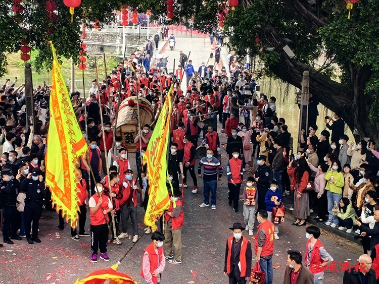 據(jù)博羅縣誌記載, 橫河「買燈」這一春節(jié)習(xí)俗已傳承了數(shù)百年。按照習(xí)俗,各村的買燈隊伍凌晨四五時出發(fā)趕往橫河圩鎮(zhèn)買燈。上午八九時,買燈隊伍買到燈後就往回趕了,爭取搶個好時辰將燈掛在本族祠堂,俗稱「上燈」,寓意「添丁發(fā)財」。