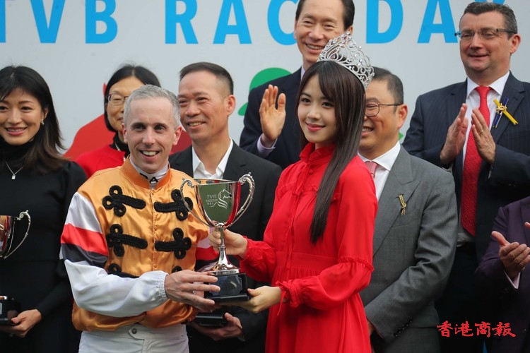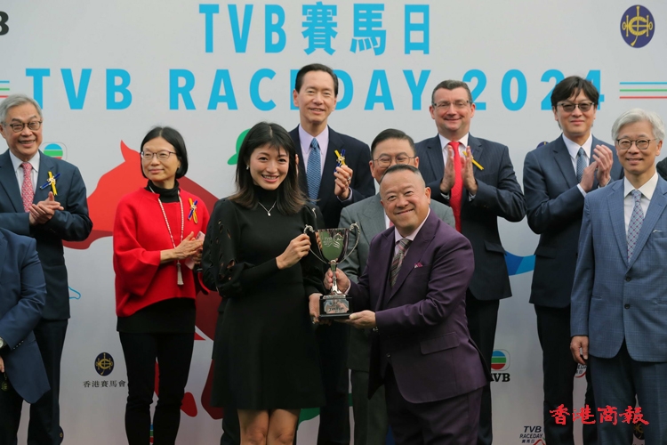 TVB行政主席許濤、總經理(節(jié)目內容營運)曾志偉、總經理(商務營運)蕭世和,以及2023年度香港小姐友誼小姐姜依寧、亞軍王怡然、冠軍莊子璇、季軍王敏慈賽後一齊出席頒獎儀式。值得一提的是,練馬師賀賢的太太李姿敏,正是2009年港姐亞軍,如今訓練「增有」贏得TVB盃,可說與TVB相當有緣。(文、圖、影片,志誠)
