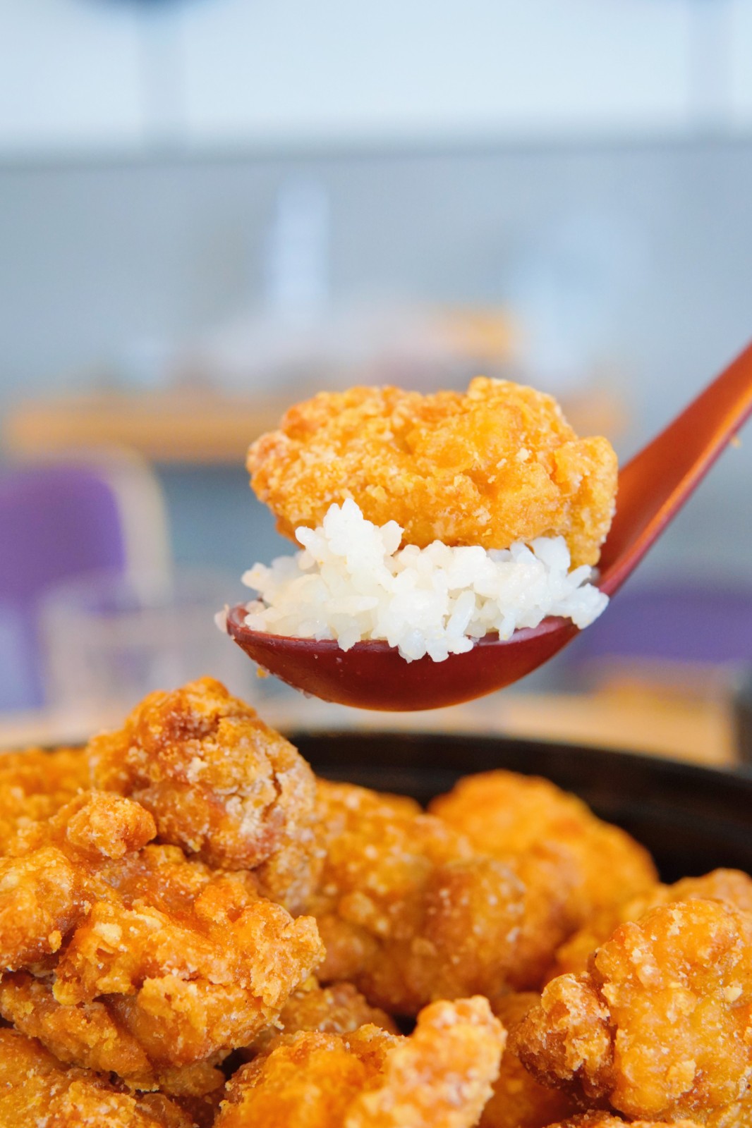 香脆的唐揚(yáng)雞與宮城縣A級(jí)米飯結(jié)合,再搭配各式調(diào)味醬,美味又滿足。