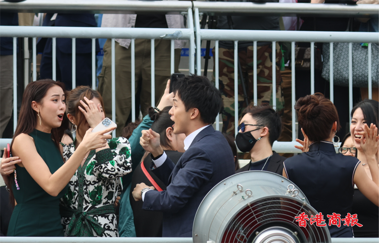 全日重頭戲為八場一班1400米TVB盃開跑前,一眾TVB藝人從二樓的會員席廂座出來,去到欄邊觀賞賽事。這場TVB盃鬥得精彩,結(jié)果由3號馬「增有」後上捧盃。而何廣沛、蔡思貝、劉佩玥、劉穎鏇及陳曉華等人正正就是投注了「增有」?!冈鲇小乖谥甭飞弦欢仁芾?,直至最後150米始能展步衝刺,何廣沛這時按耐不住,振臂狂嗌「3號!3號!3號!」,充滿激情,「增有」亦不負所託,率先衝線,馬兒過終點一刻,何廣沛即與蔡思貝拍掌慶祝,而興奮大叫、一路睇一路跳的劉佩玥就是掩面與劉穎鏇來個擁抱,似是不相信「增有」勝出般,場面搞笑!