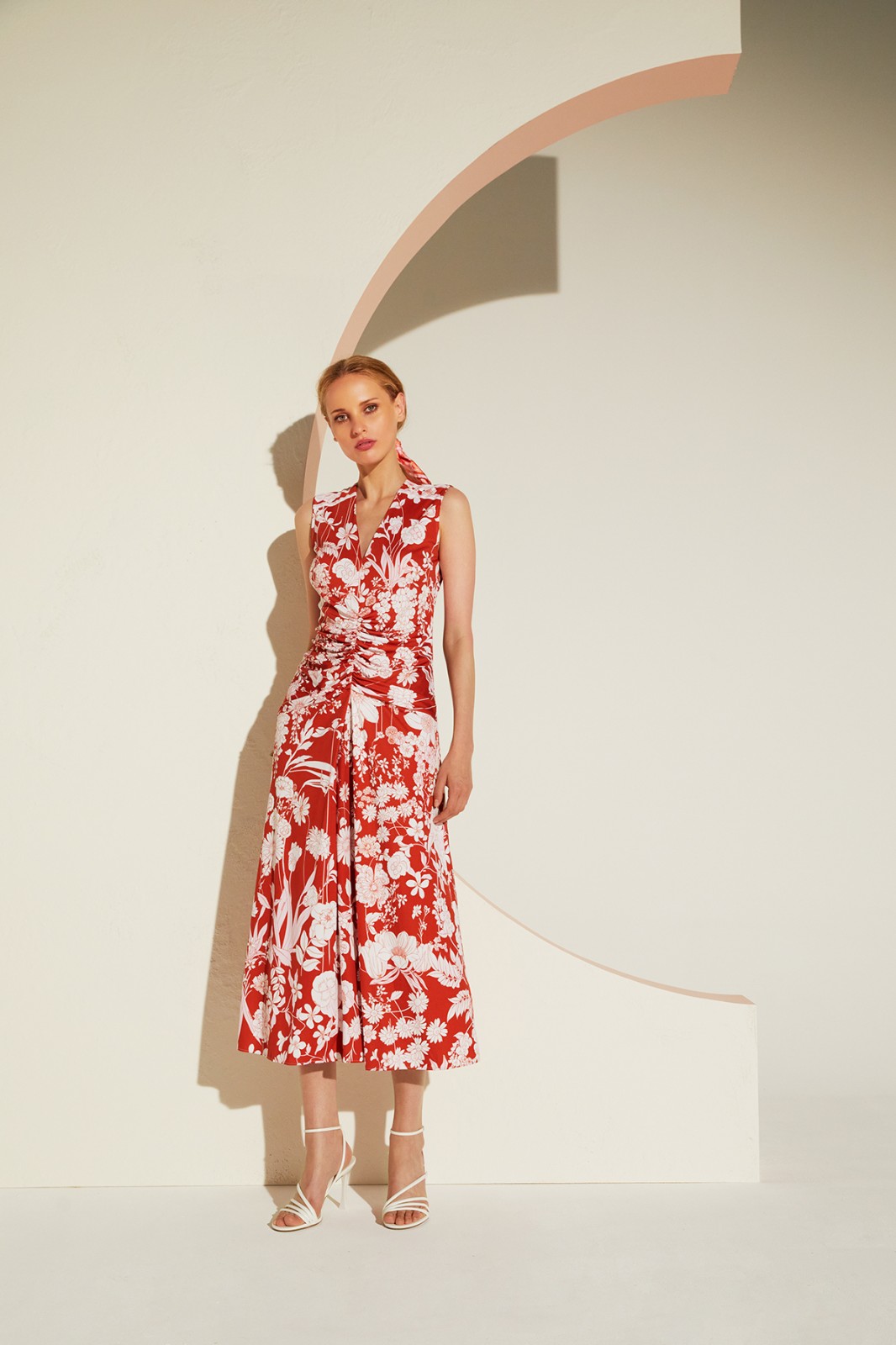 紅色印花連衣裙令度假造型吸睛亮眼。