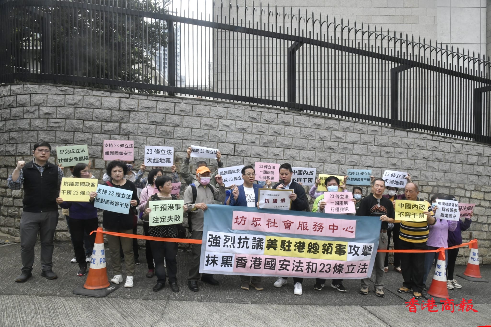 一眾香港市民和坊眾社會服務中心今日(5日)分別前往美國駐港澳總領事館請願。到場市民稱,作為香港人對美國政客抹黑23條立法強烈不滿和堅決反對,更對23條立法表示支持及歡迎。23條立法充分體現(xiàn)香港人權(quán)、自由、法治,維護國家安全是港人義務與責任,只有國家安全,香港才能心無旁騖,集中精力發(fā)展經(jīng)濟、改善民生。