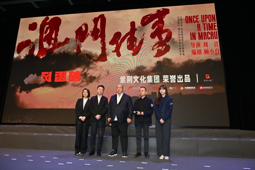 劇目《澳門(mén)往事·風(fēng)雷破》,總製片人劉巖、王彤、製片人潘冠男、導(dǎo)演劉江及編劇顧小白上臺(tái)分享了這部電視劇。