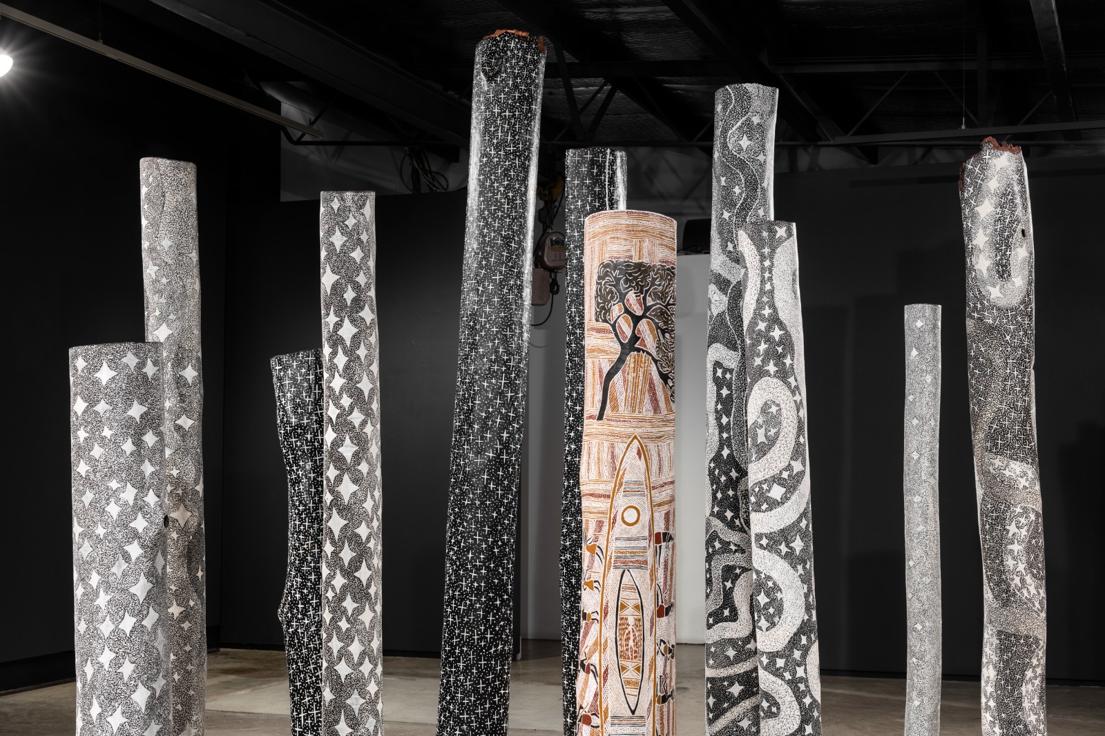 Naminapu Maymuru-White作品《Larrakitj Group》,2021年。(圖片由藝?yán)萐ullivan & Strumpf及藝術(shù)家提供)