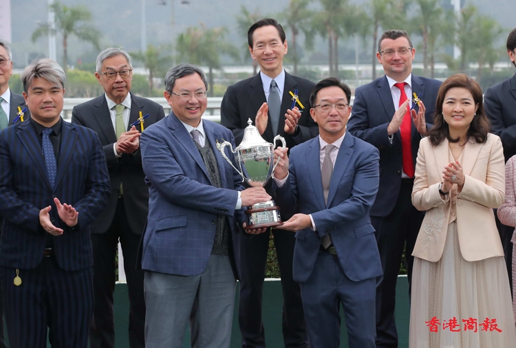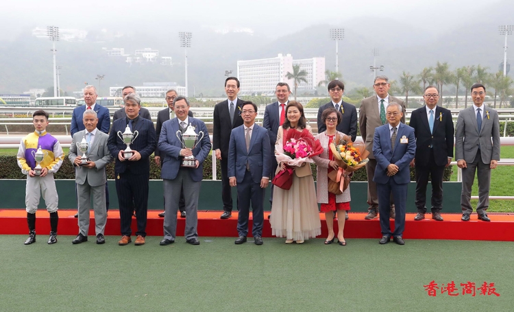 五場(chǎng)三班1200米的鄉(xiāng)議局盃,排三檔起步的「樂滿貫」出閘主動(dòng)擺前走,直路越跑越有,最終以個(gè)多馬位之先擊敗亞軍馬「電子傳奇」,「特別美麗」後追第三。「樂滿貫」馬主陸倩芳是內(nèi)地房地產(chǎn)雅居樂的創(chuàng)辦人之一,不過她今日未有進(jìn)場(chǎng),由友人吳嵩拉頭馬兼領(lǐng)獎(jiǎng)。馬會(huì)主席利子厚、行政總裁應(yīng)家柏、一眾高層以及新界鄉(xiāng)議局主席劉業(yè)強(qiáng)賽後一齊出席頒獎(jiǎng)儀式。