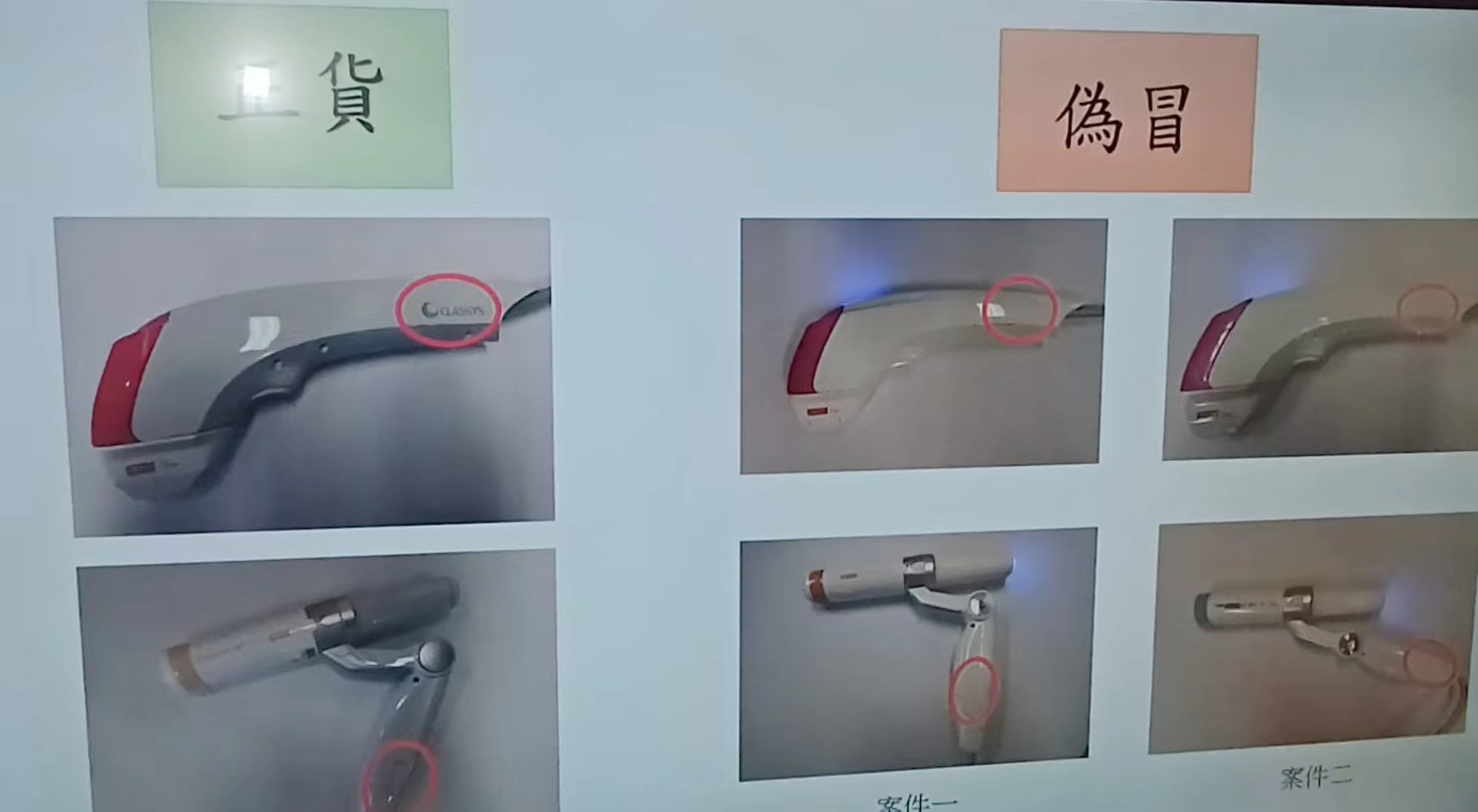 案中檢獲的偽冒儀器和正貨不論在外觀、功能和價(jià)錢上有明顯差異。首先偽冒儀器其中一部機(jī)身沒有正貨產(chǎn)品的標(biāo)籤,另一部雖有標(biāo)籤但位置與正貨儀器不同;正貨儀器的操作手板和機(jī)身背面均有製作商的商標(biāo),偽冒儀器則沒有印上。根據(jù)代理相提供資料,正貨是利用高強(qiáng)度聚焦超聲波達(dá)致美容效果,人員初步測試偽冒儀器,經(jīng)代理商測試人員證實(shí),輸出能量的方式與正貨有明顯差別,美容效果成疑。